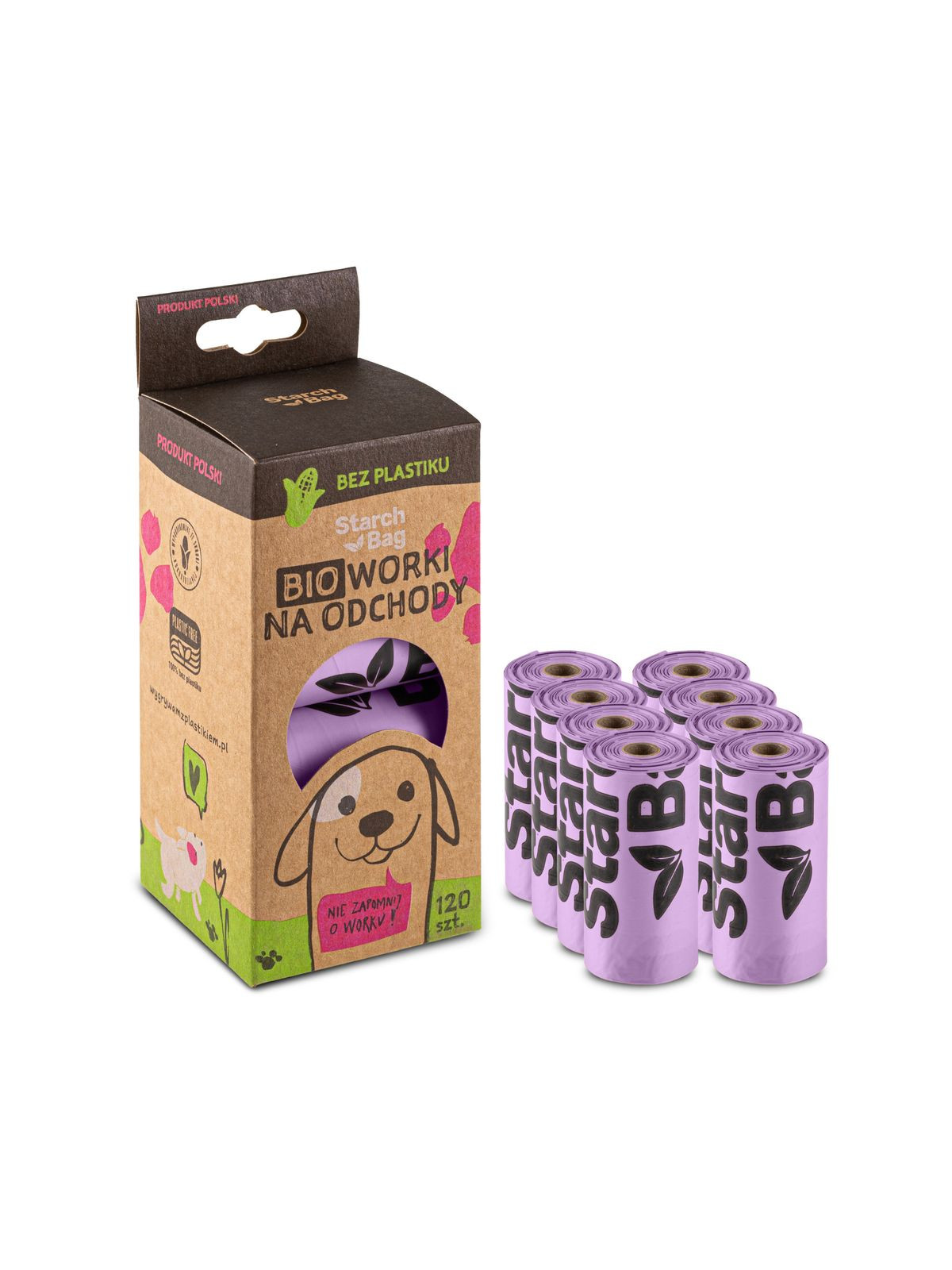 Ośmiopak zawiera 120 woreczków StarchBag i wystarcza na około 3 miesiące ekologicznych spacerów z psem.