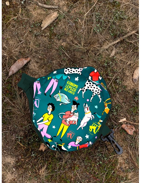 Miska została wykonana z wysokiej jakości, wodoodpornych materiałów, co sprawia, że nadaje się doskonale zarówno do karmy, jak i do wody podczas spacerów w różnych warunkach atmosferycznych.