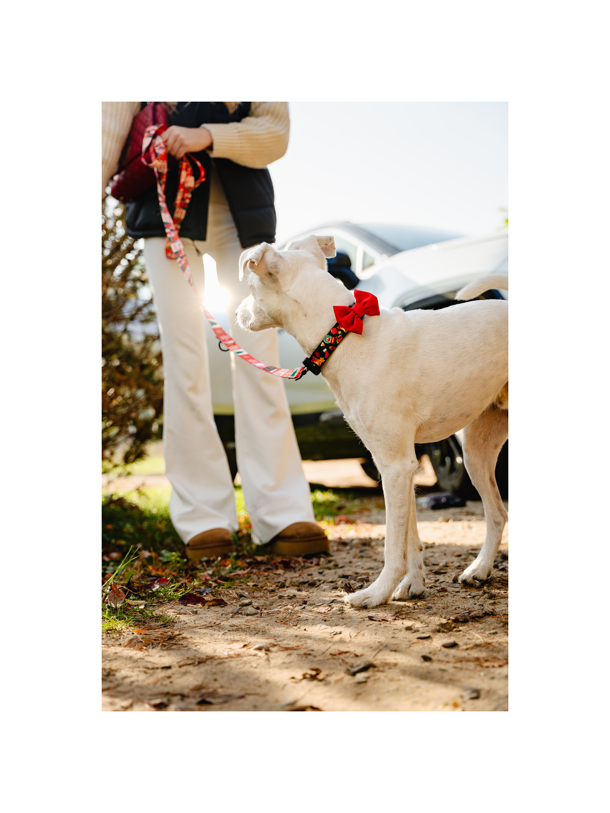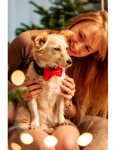 Wprowadź ciepły, świąteczny klimat do wyglądu swojego psa dzięki tej uroczystej obroży z muszką!