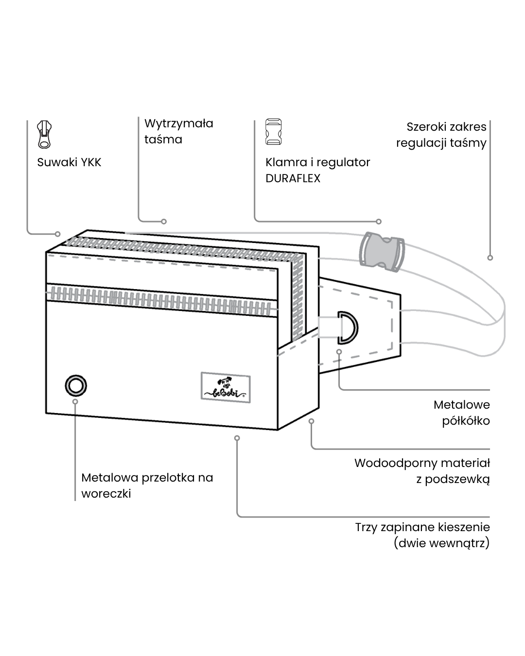 Materiał główny: Kodura (100% poliester) z wykończeniem PVC – trwała, wodoodporna i łatwa w czyszczeniu.