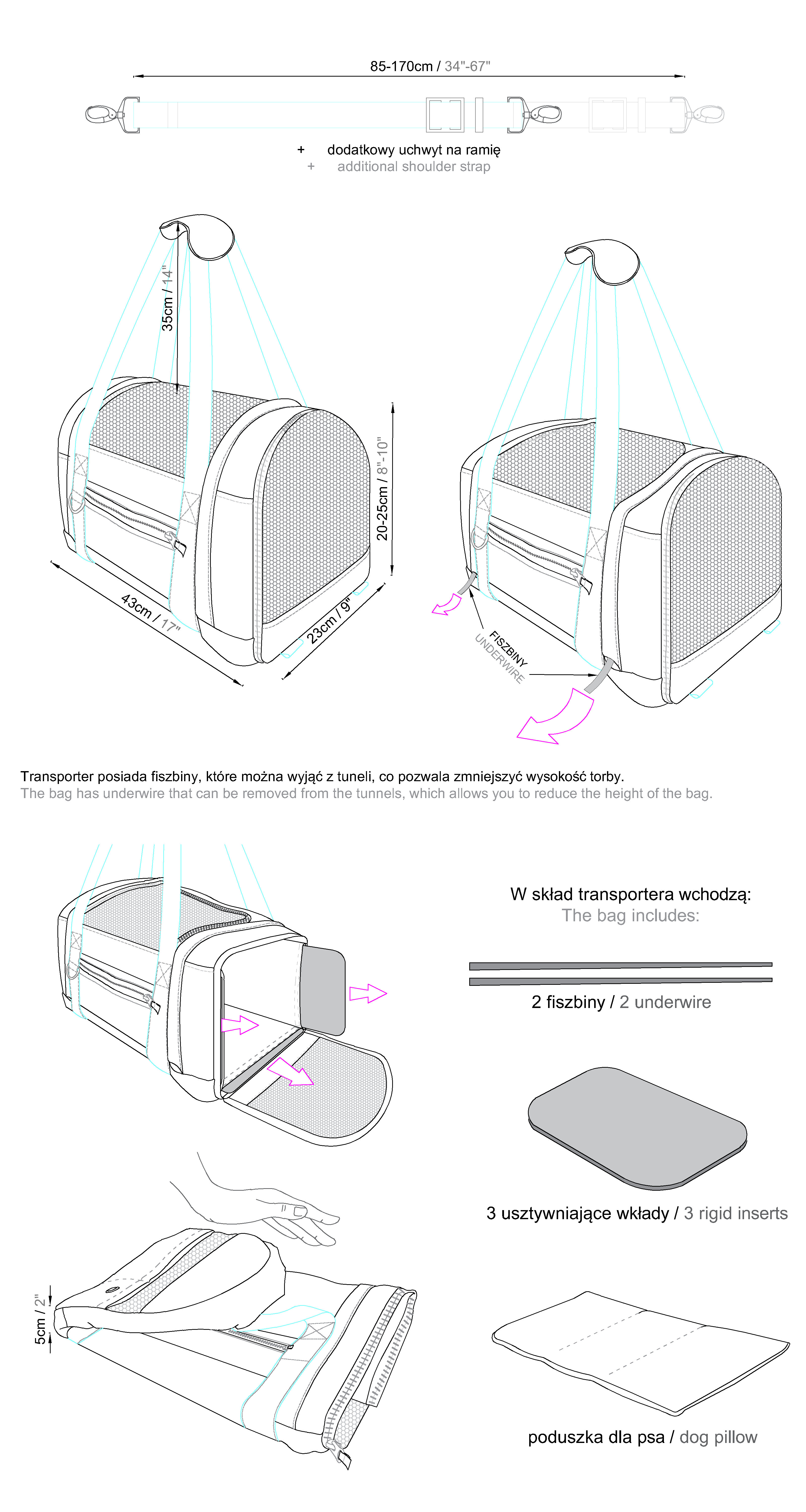 Oxford (100% polyester with PU coating) – a durable fabric featuring our original design. Thanks to the additional coating, it is resistant to moisture and mechanical damage.