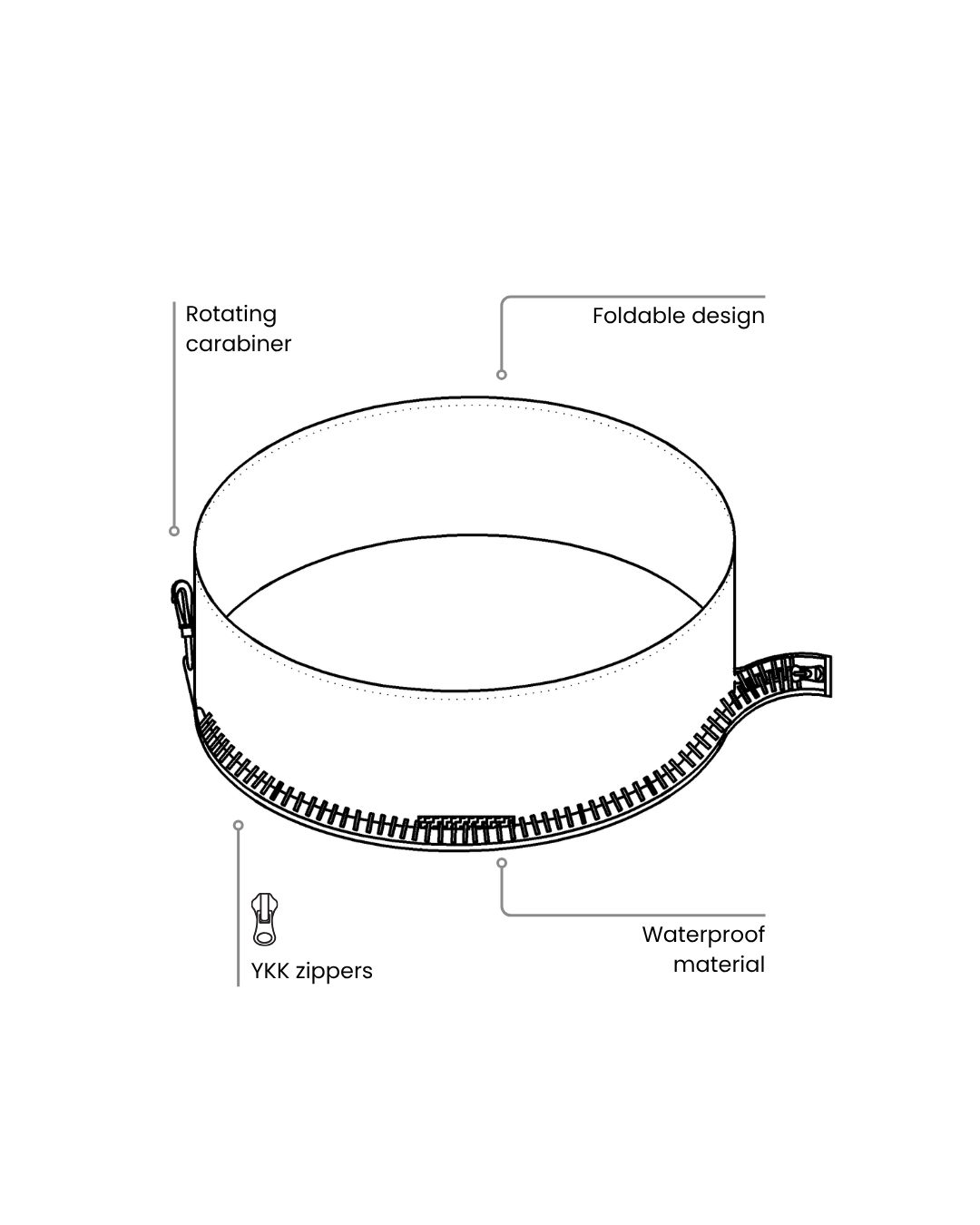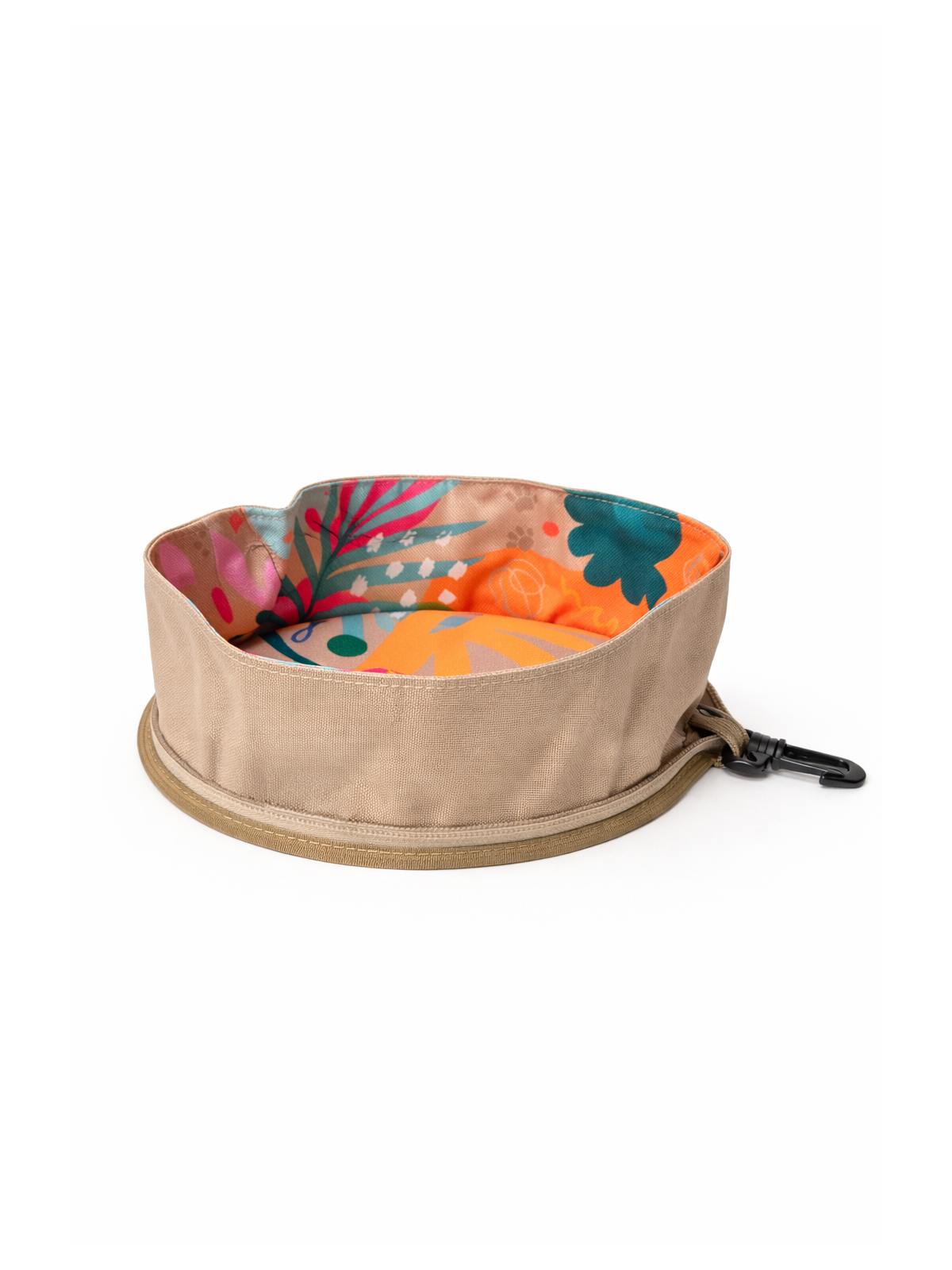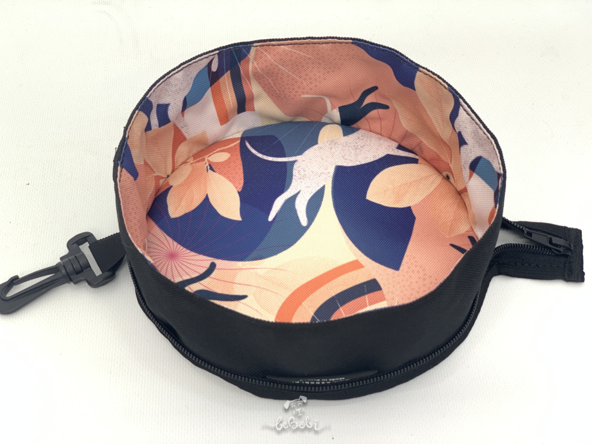 This practical travel bowl is made from waterproof materials, making it easy to fold and unfold whenever you need it. It takes up very little space, so you can always have it with you on walks, trips, or vacations. A handy carabiner allows you to attach the bowl to a backpack or waist bag.
