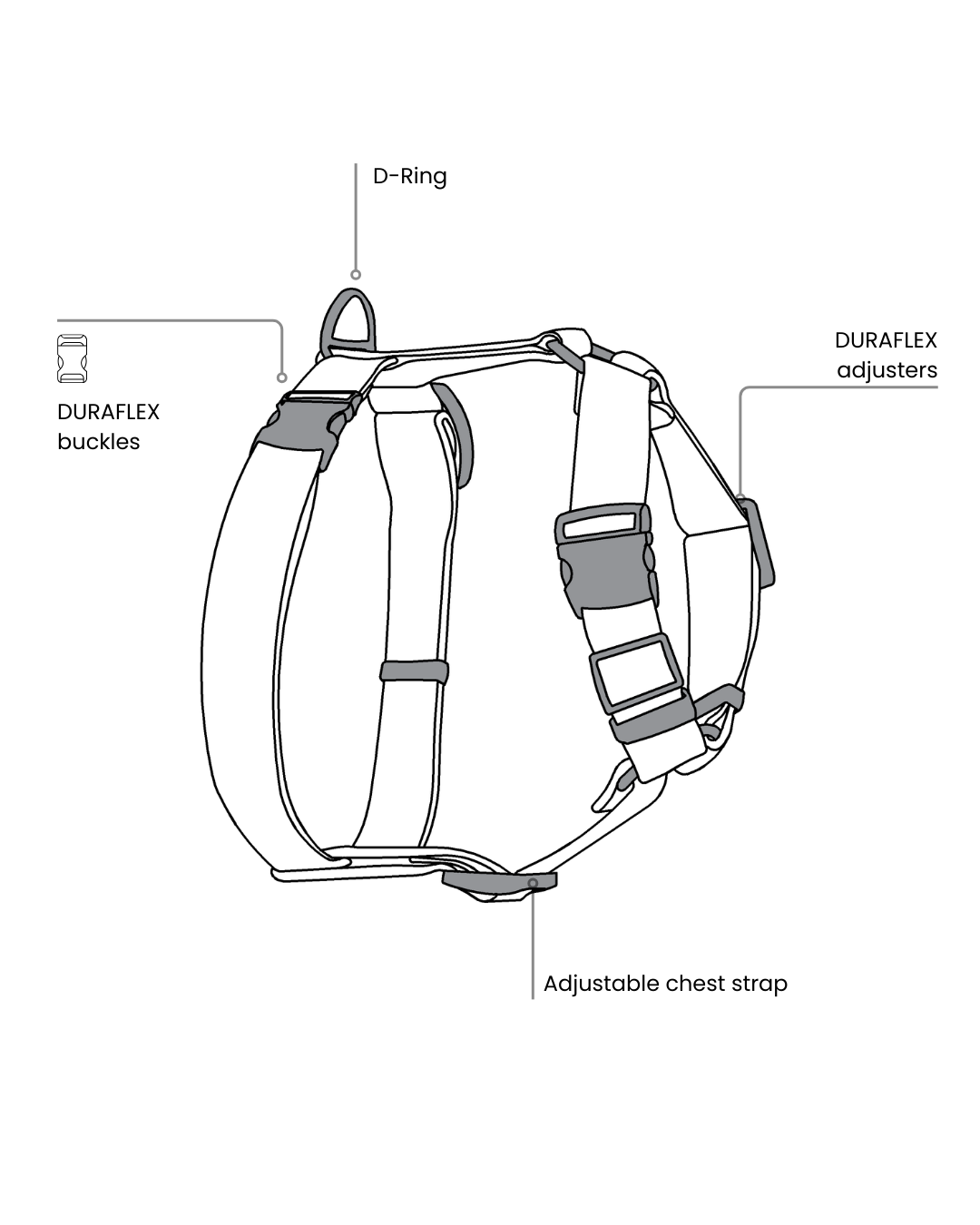 Duraflex buckles and adjusters: made from high-quality Acetal.