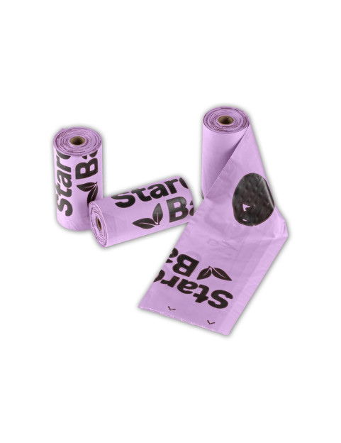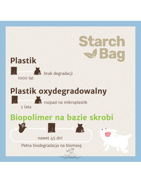 100% biodegradowlane i kompostowalne worki na psie odchody StarchBag w ekonomicznym zestawie.