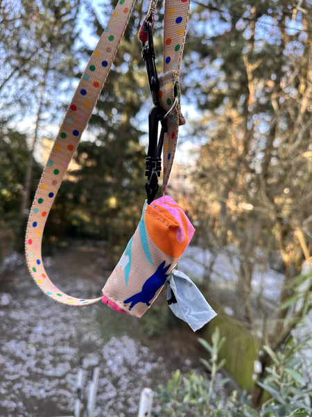Poop bag holder is a comfortable and soft pouch for waste bags (poop bags) that you can easily attach to your leash.