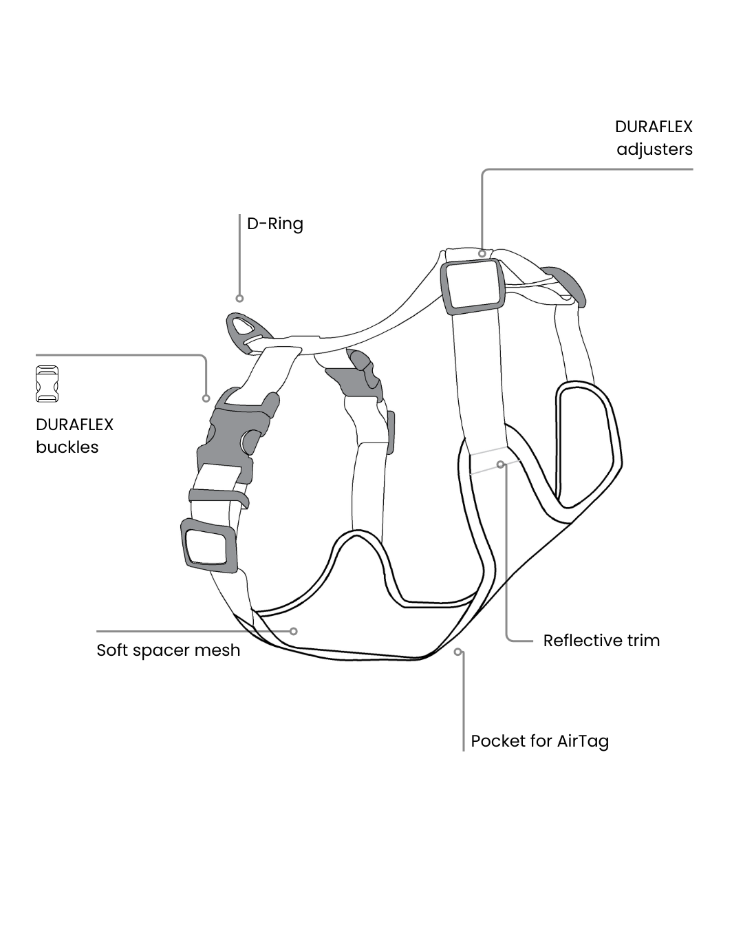 Duraflex buckles and adjusters: made from high-quality Acetal.