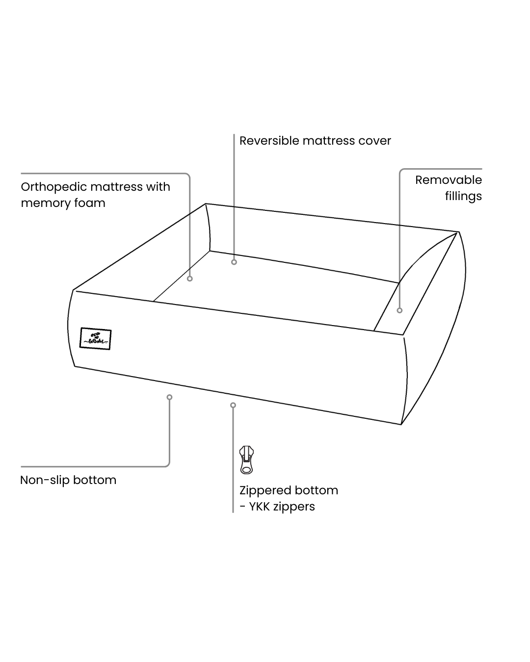 Main material (100% polyester) with a PET-PROOF WATER REPELLENT protective coating – a soft and pleasant-to-the-touch fabric that effectively reduces moisture absorption.