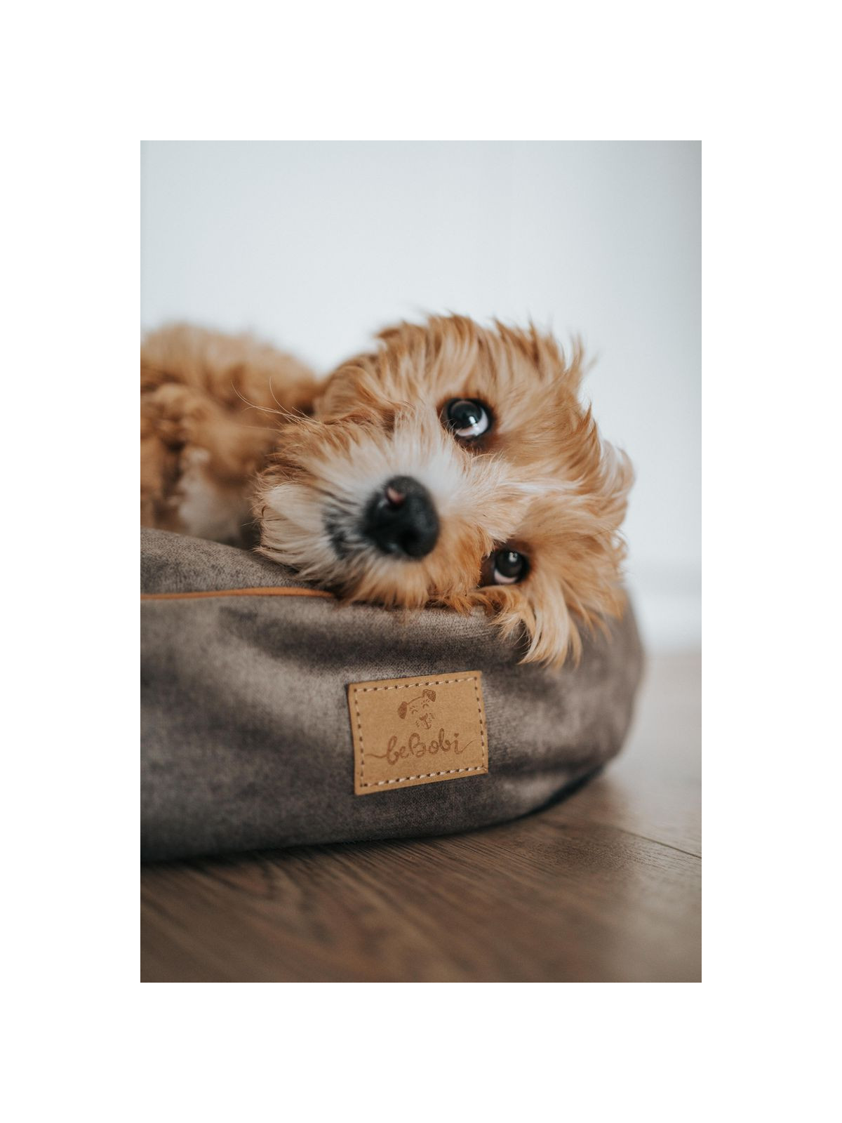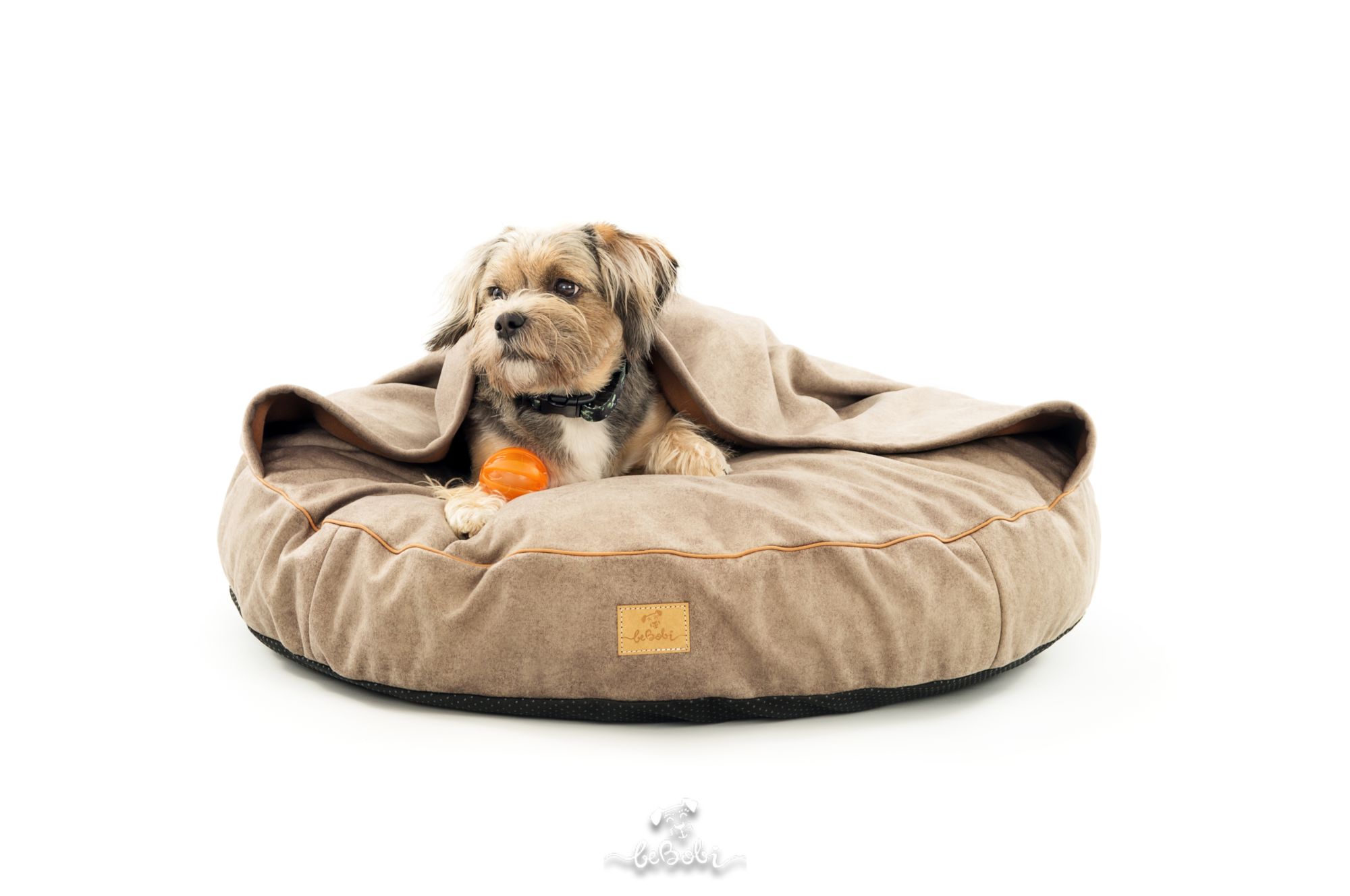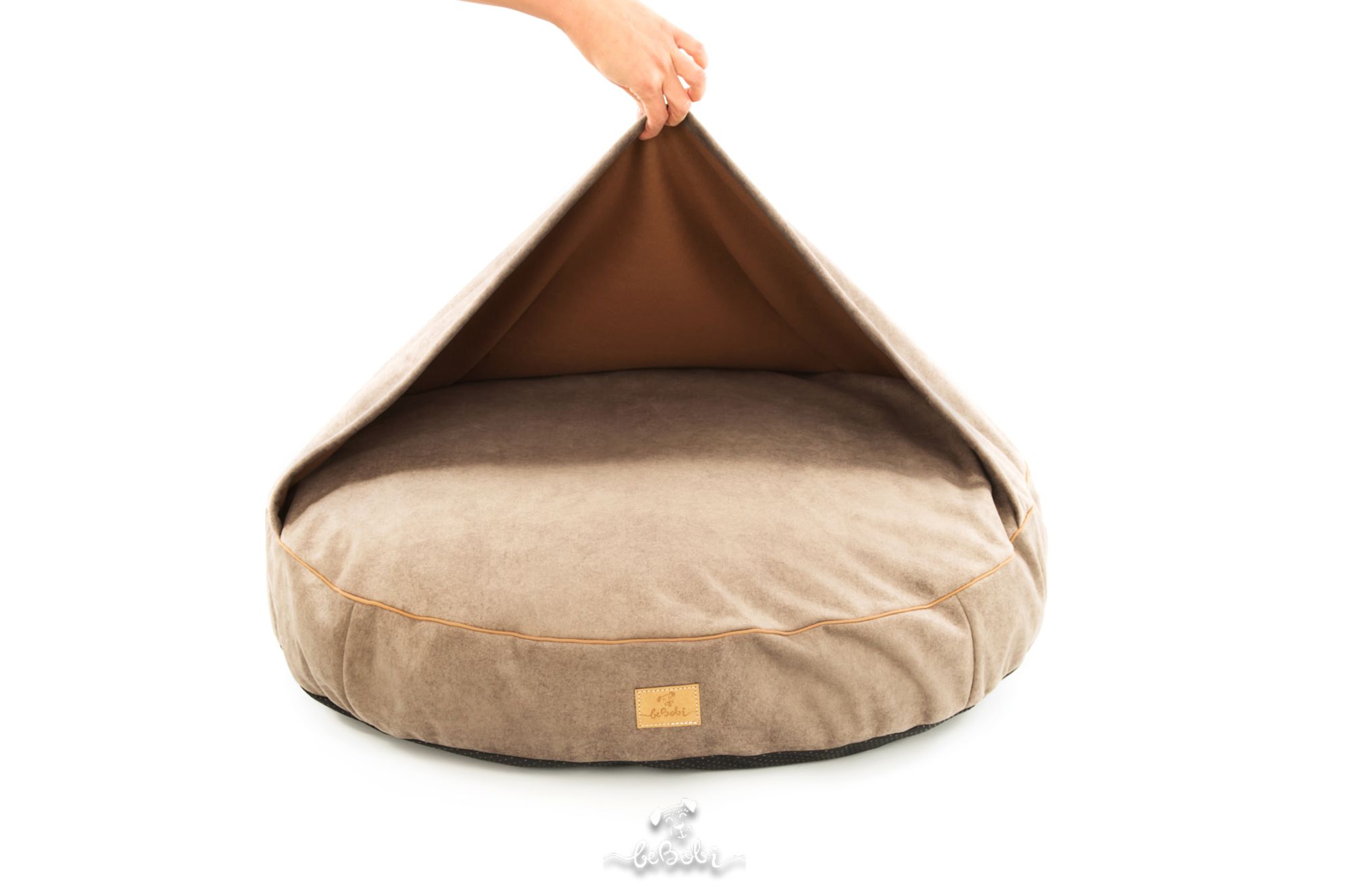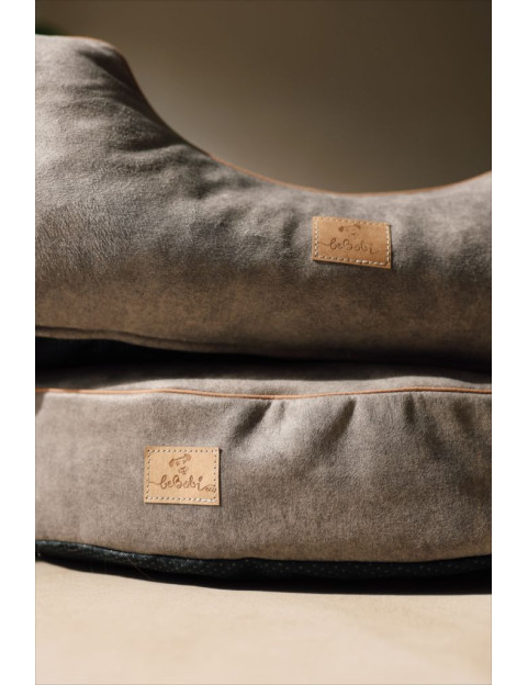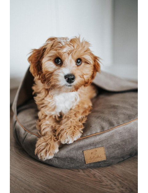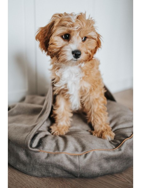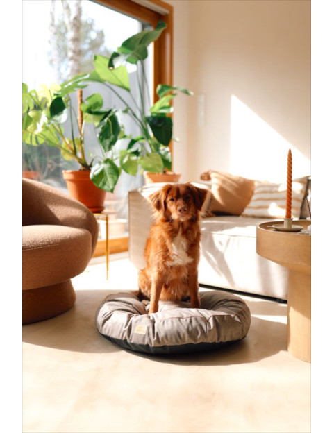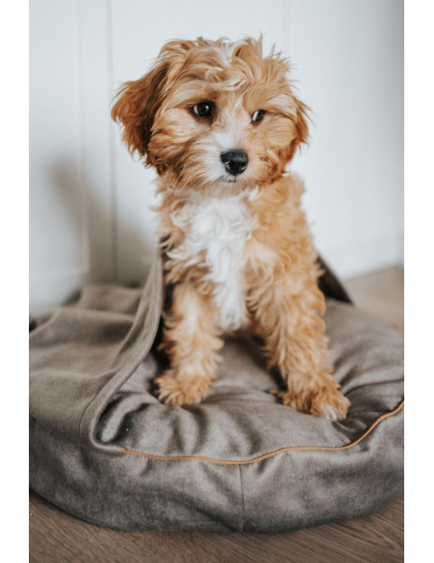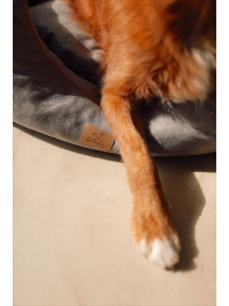 Dog bed round cushion with blanket VELVET DARK BEIGE