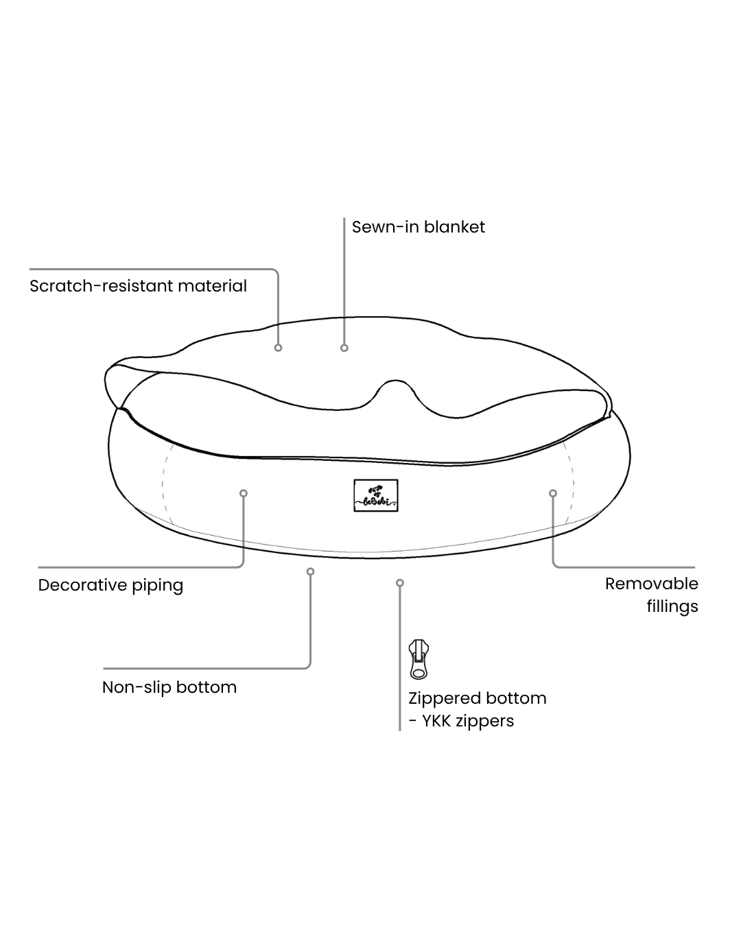 Main fabric (100% rPET): A soft, pleasant-to-the-touch material made from recycled plastic bottles.