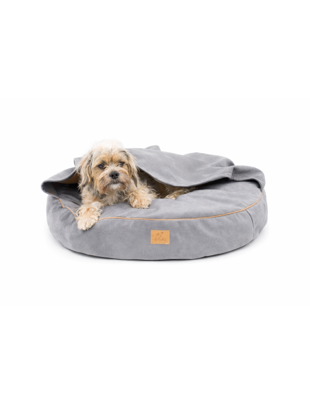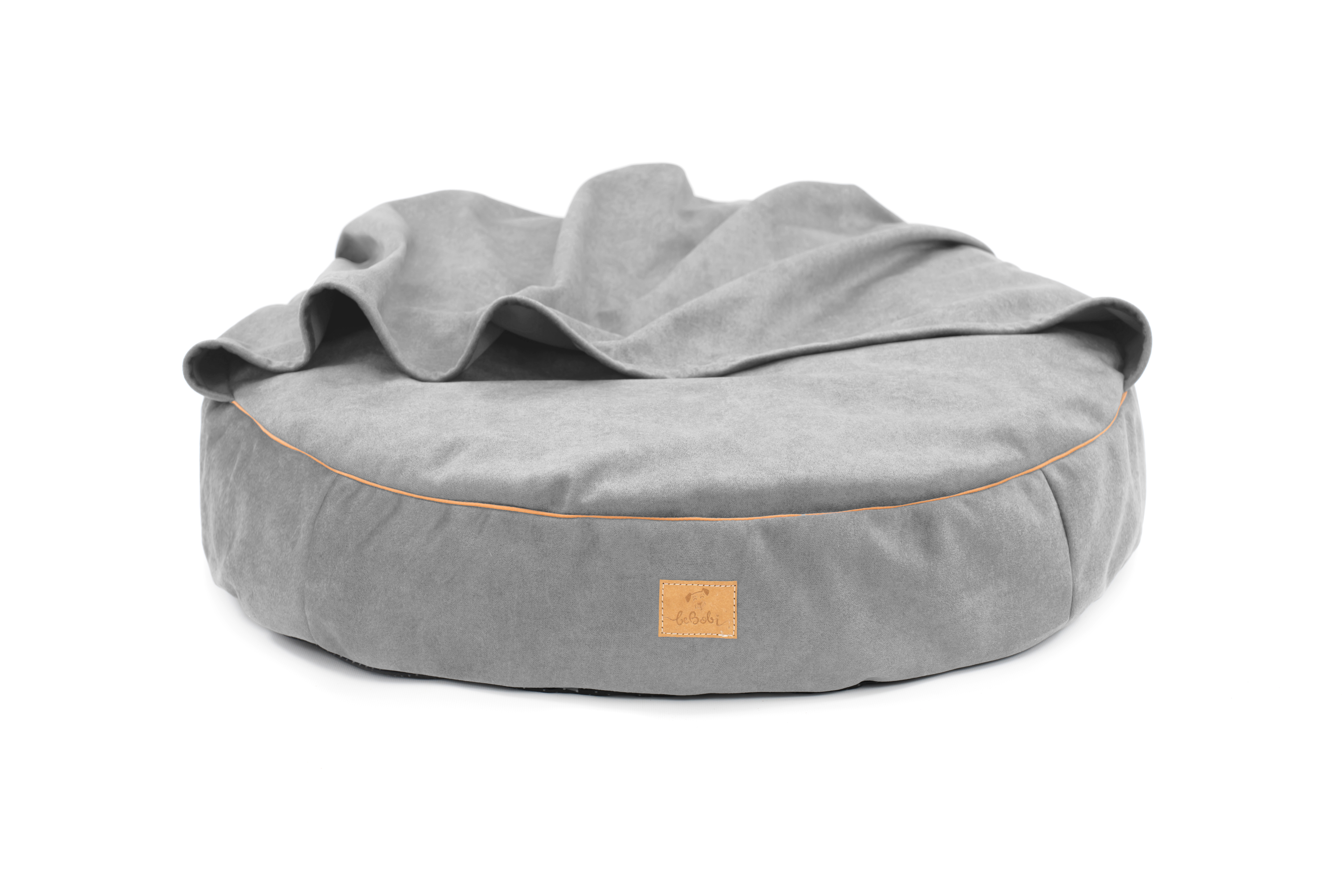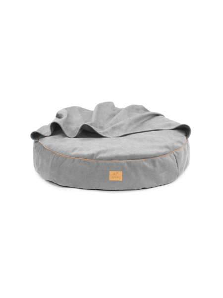 Dog bed round cushion with blanket VELVET LIGHT GREY