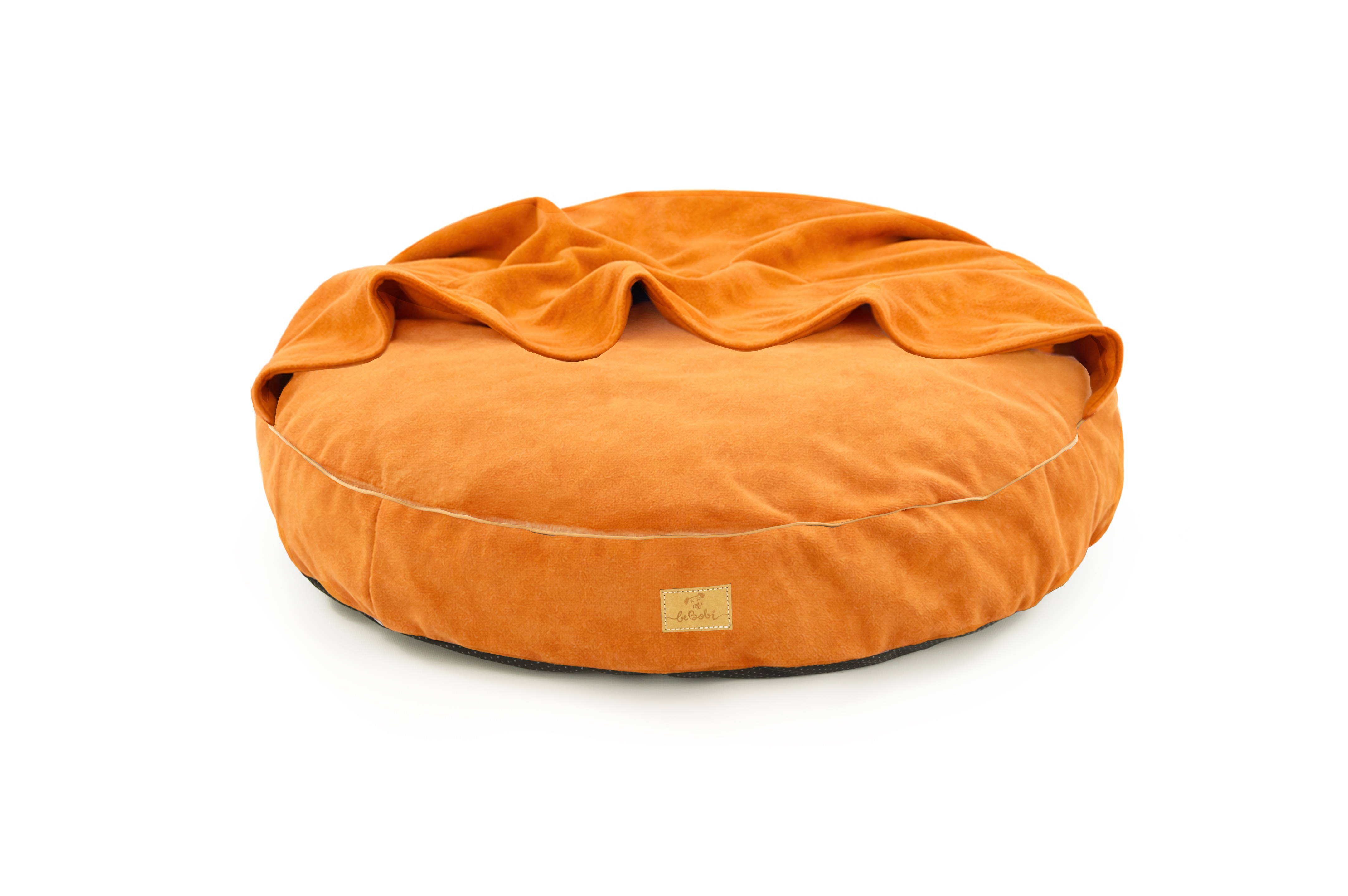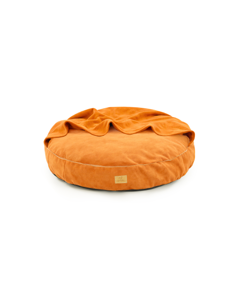 Dog bed round cushion with blanket Waterproof Velvet Cognac