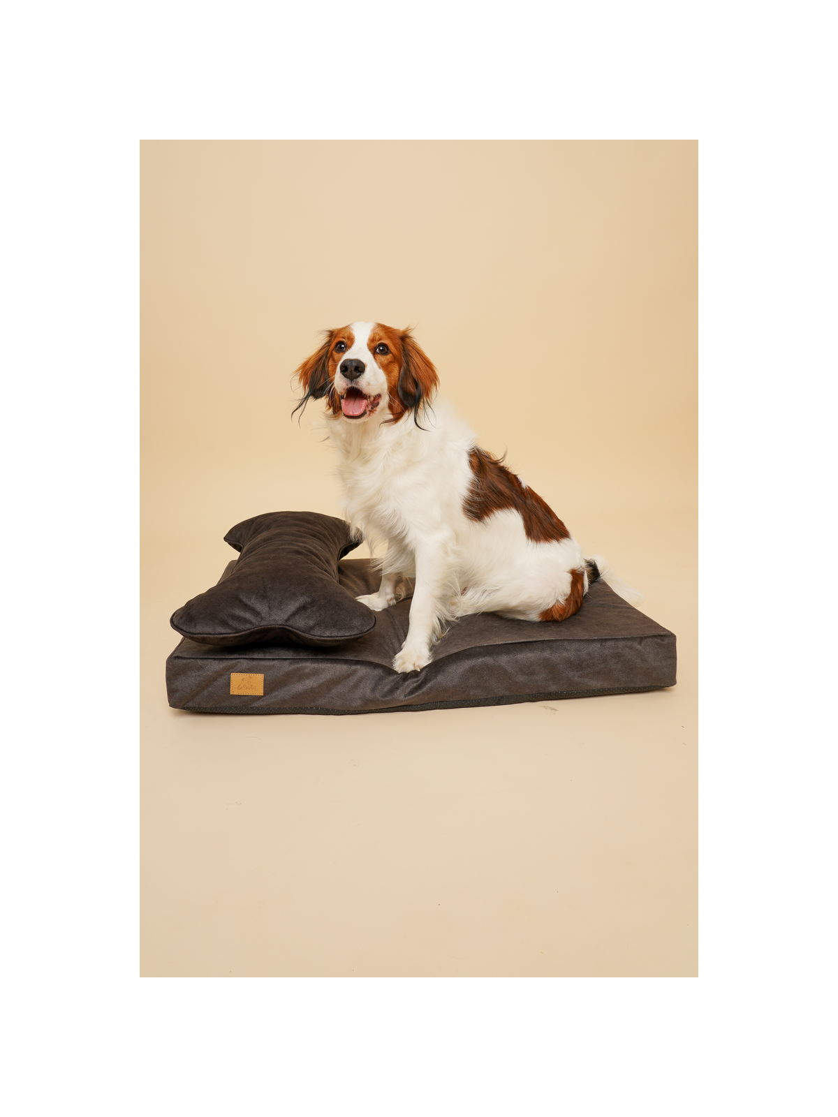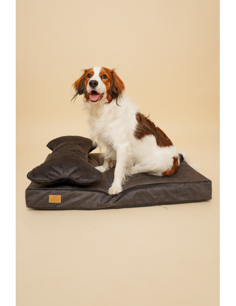 Orthopedic dog mattress Waterproof Black Velvet with bone shaped pillow