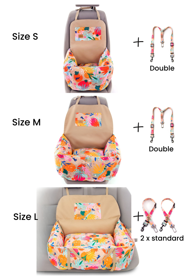 Roz. L - dla psów max. 25 kg lub dwóch średnich psów. W foteliku są dwa otwory na przeprowadzenie pasa.