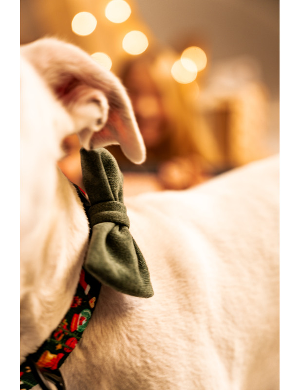 The dark green or red bow tie brings warmth and charm to your dog’s look, perfectly matching the holiday spirit at family gatherings and on winter walks.