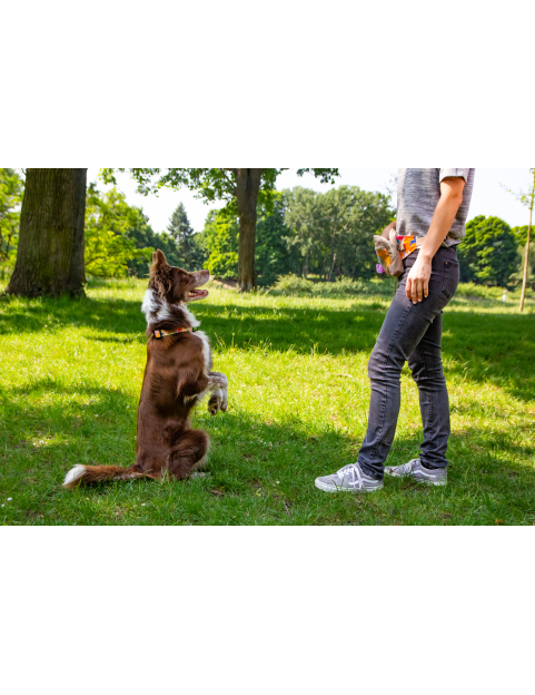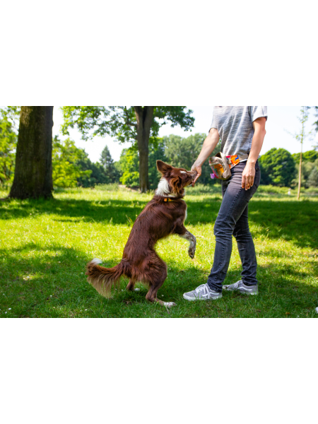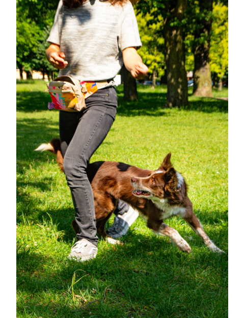 A large treat pouch/waist fanny pack for all dogs treats and your stuff, e.g., keys or cell phone.