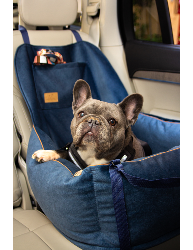 "Ero Soft" dog car seat VELVET water repellent DARK BLUE size S/M/L WITH SEAT BELT