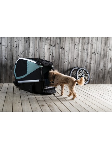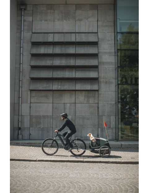 Thule® Bexey dog bike trailer – safe, comfortable, and spacious. Perfect for adventures with your dog, offering stability, ventilation, and quick attachment to your bike.