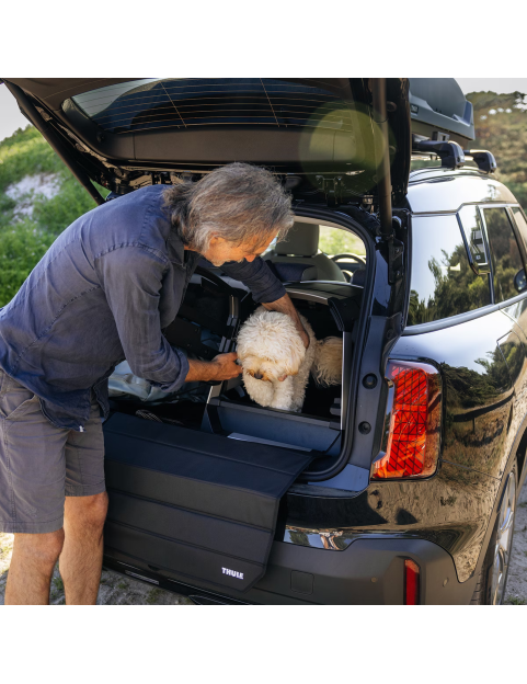 Safe, quiet, and comfortable – the Thule Allax dog car crate is designed for vehicles with a trunk threshold.