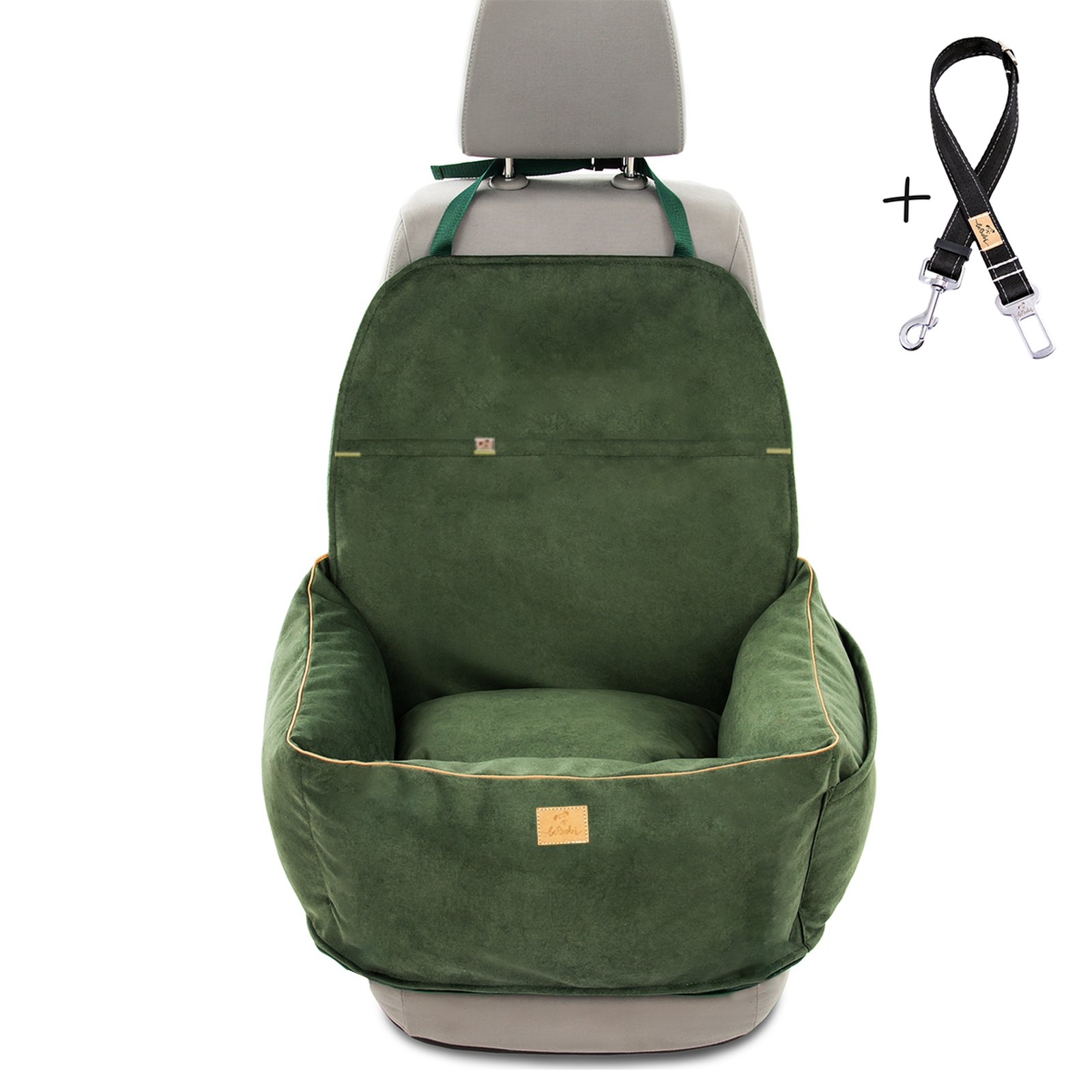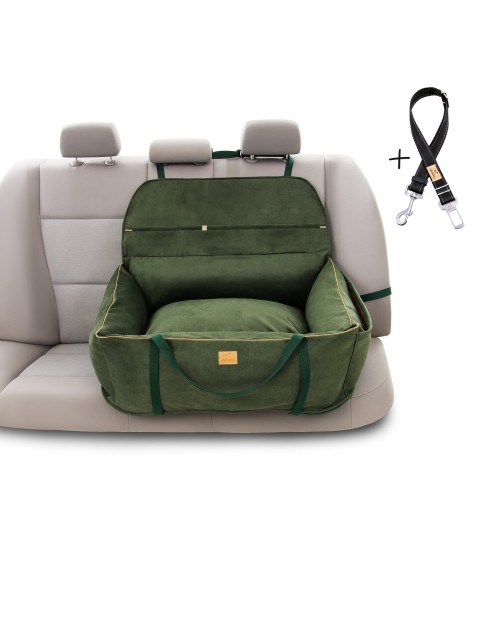 "Ero Soft" dog car booster seat RECYCLED VELVET EMERALD GREEN size M
