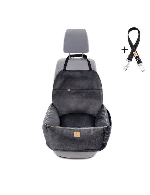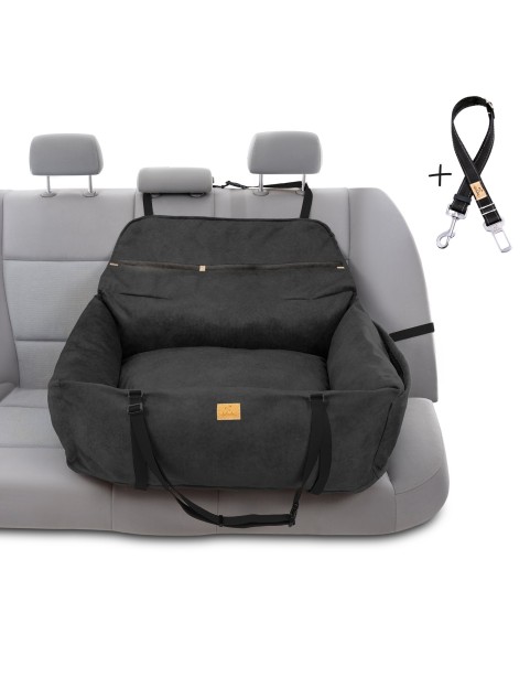 "Ero Soft" dog car seat VELVET water repellent BLACK size L WITH SEAT BELT