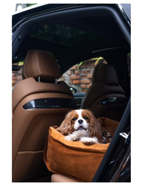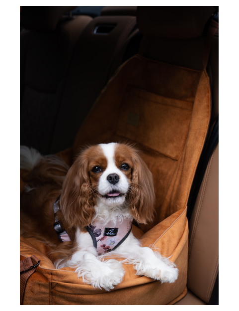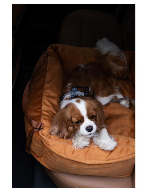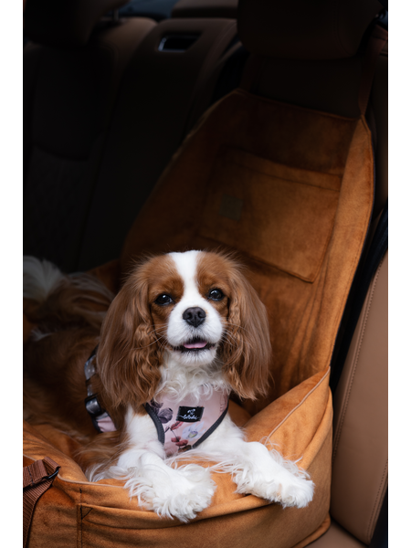 "Ero Soft" dog car seat VELVET water repellent COGNAC size S WITH SEAT BELT
