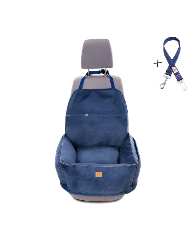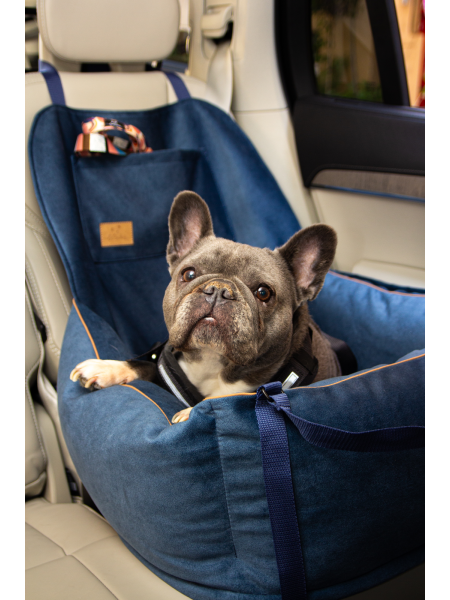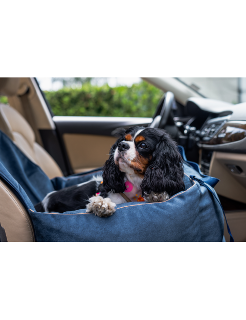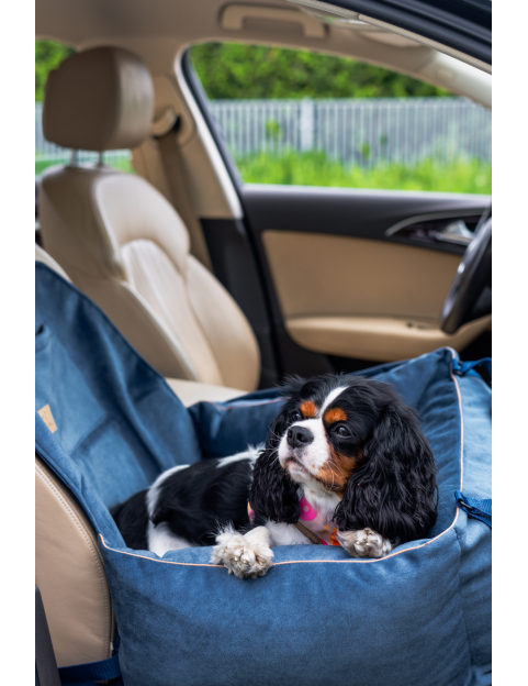"Ero Soft" dog car seat VELVET water repellent DARK BLUE size M WITH SEAT BELT