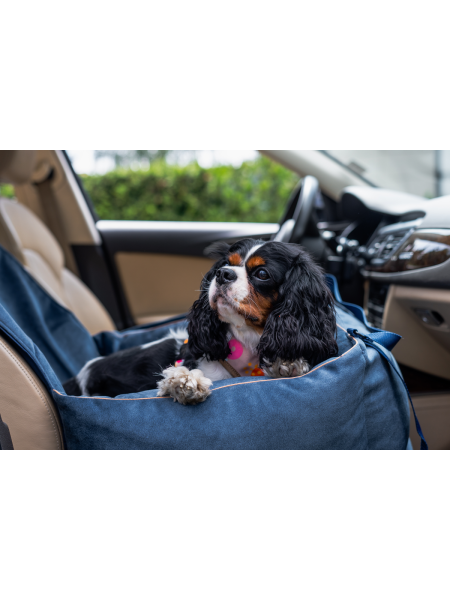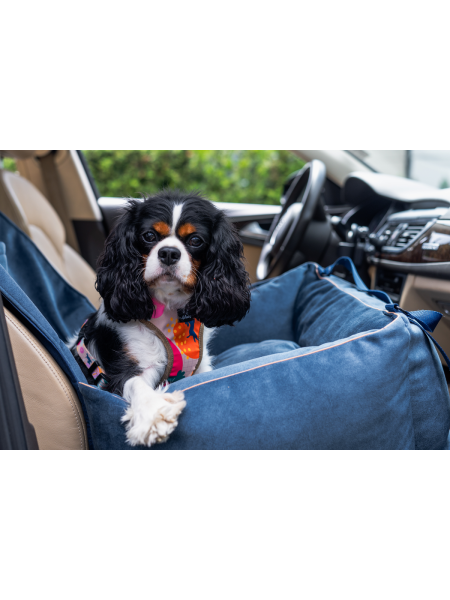 "Ero Soft" dog car seat VELVET water repellent DARK BLUE size S WITH SEAT BELT