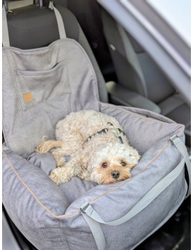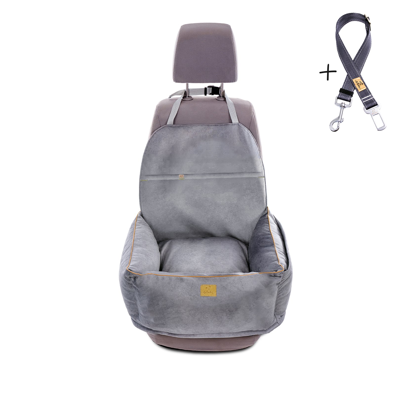 "Ero Soft" dog car seat VELVET water repellent LIGHT GREY size S/M/L WITH SEAT BELT