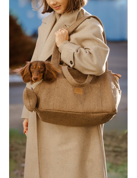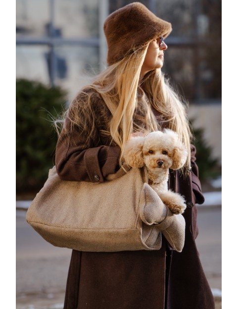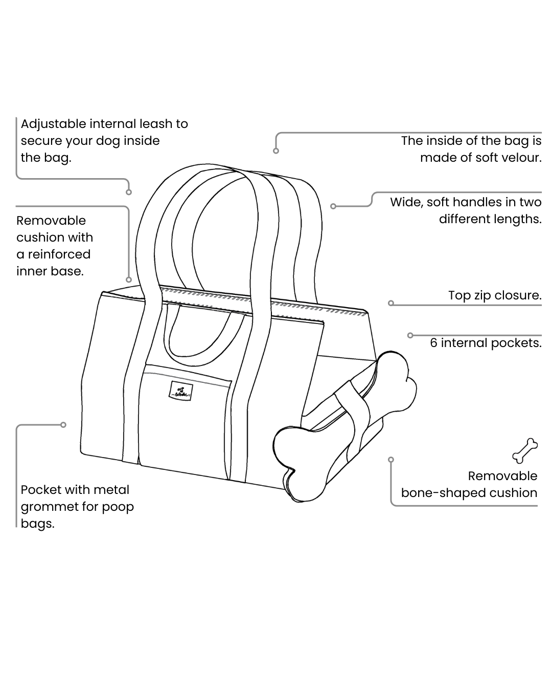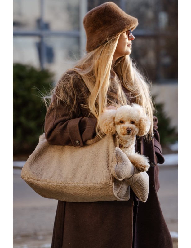 A shoulder bag for small dogs designed for everyday outings. Stable, soft and comfortable to wear, created to keep your dog close and feeling safe.