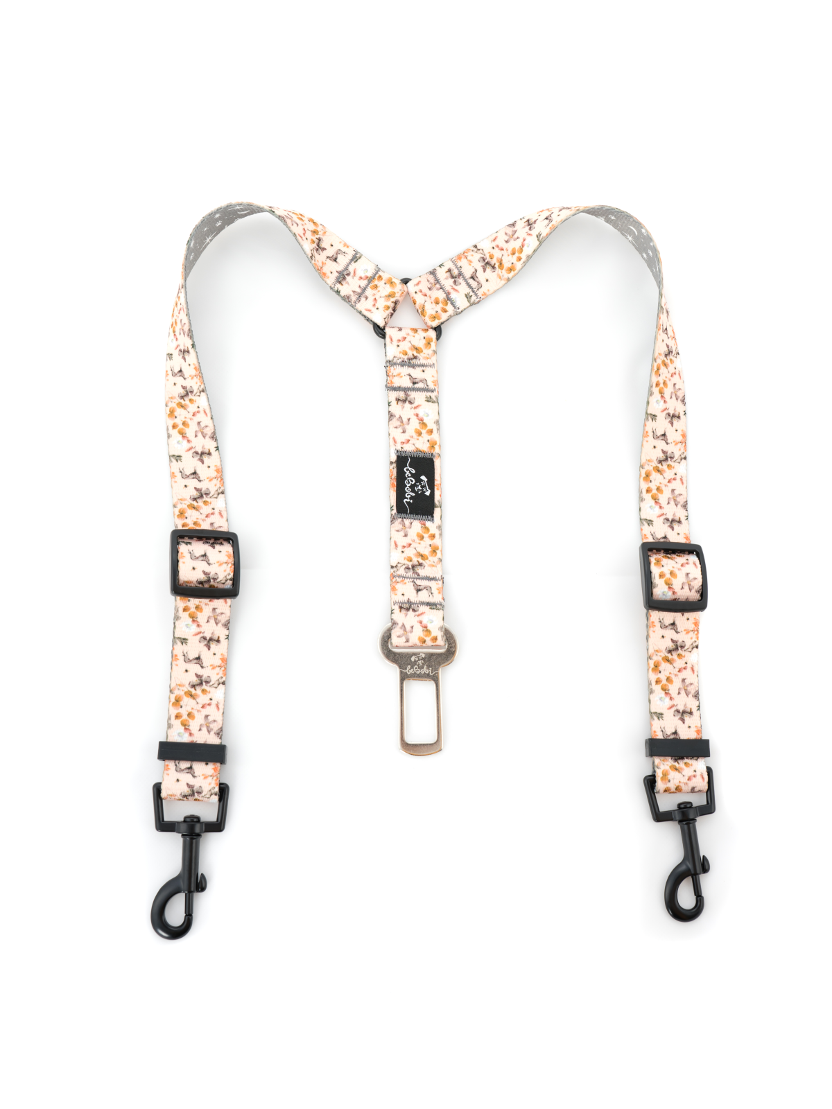 Double dog seat belt ensures comfort and safety for you and your dogs.
