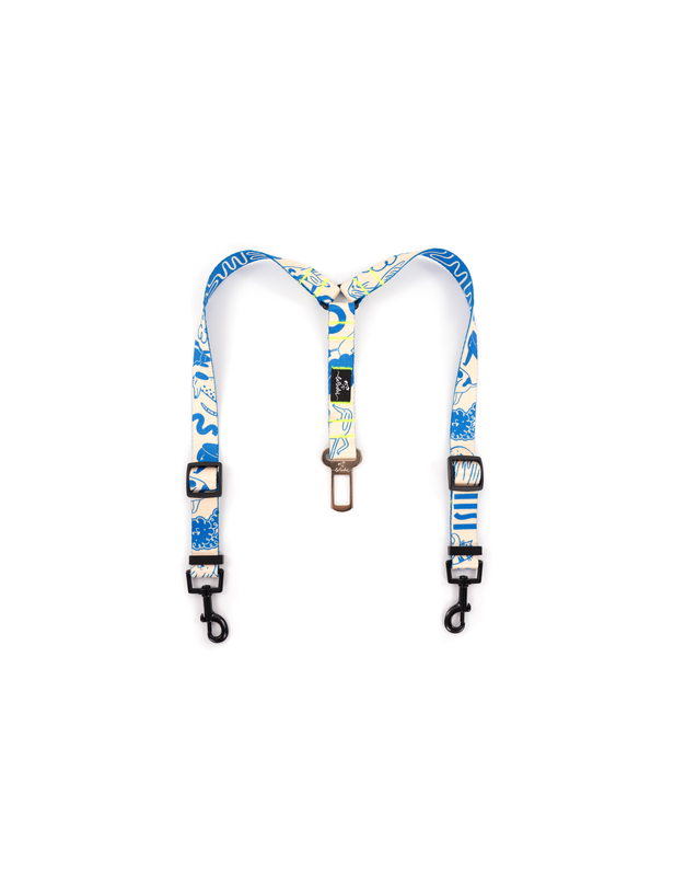 Double dog seat belt ensures comfort and safety for you and your dogs.