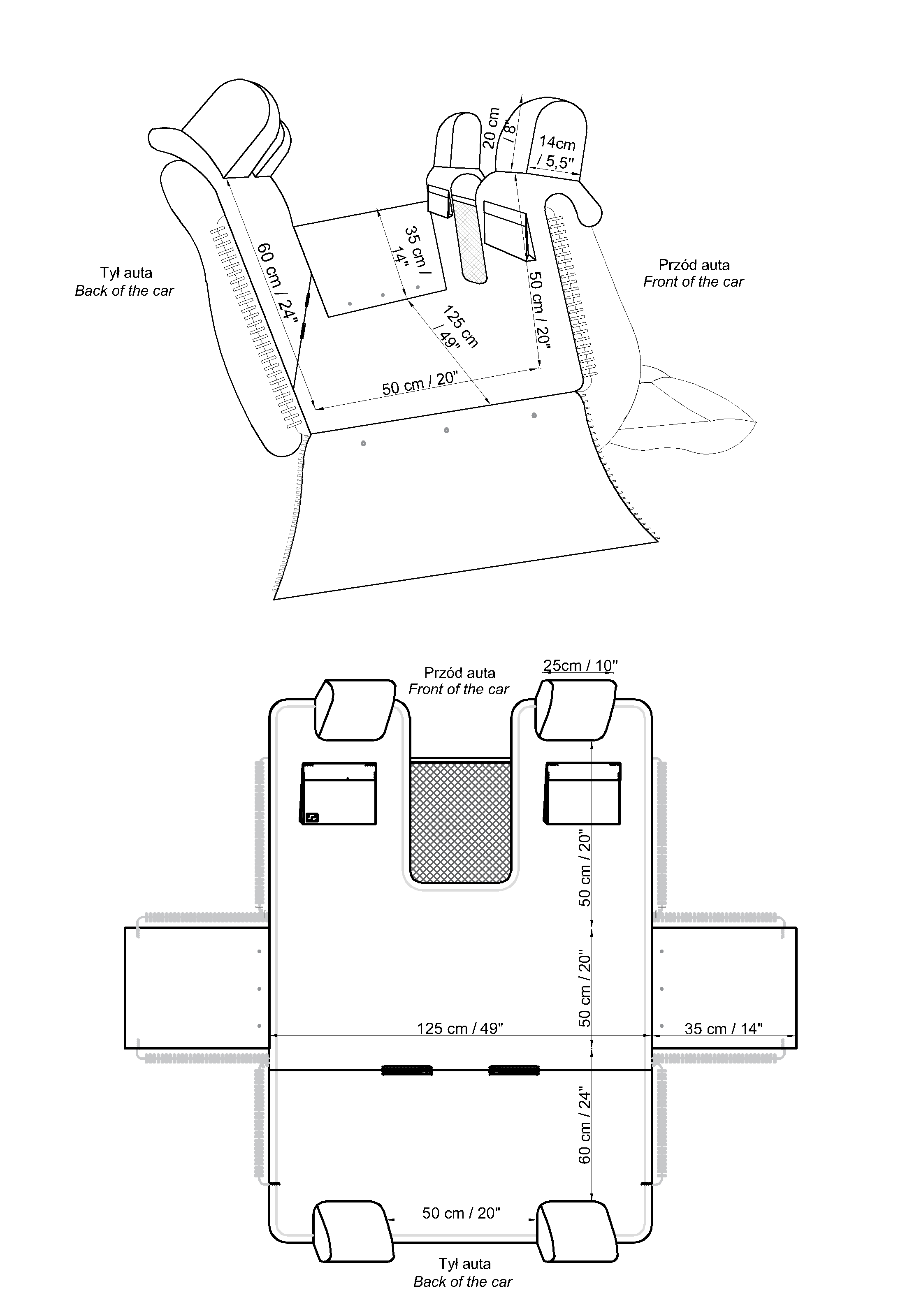 Headrests and pockets: Oxford (100% polyester with PU coating) – a strong, solid-colored fabric. Thanks to the extra coating, it’s resistant to moisture and damage.