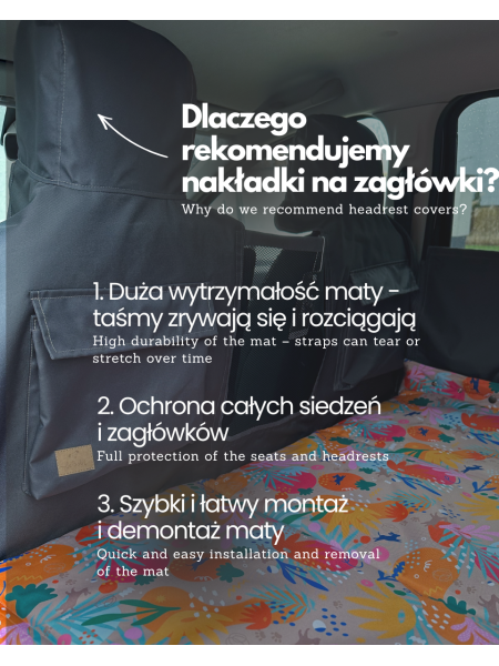 Headrests and pockets: Oxford (100% polyester with PU coating) – a strong, solid-colored fabric. Thanks to the extra coating, it’s resistant to moisture and damage.