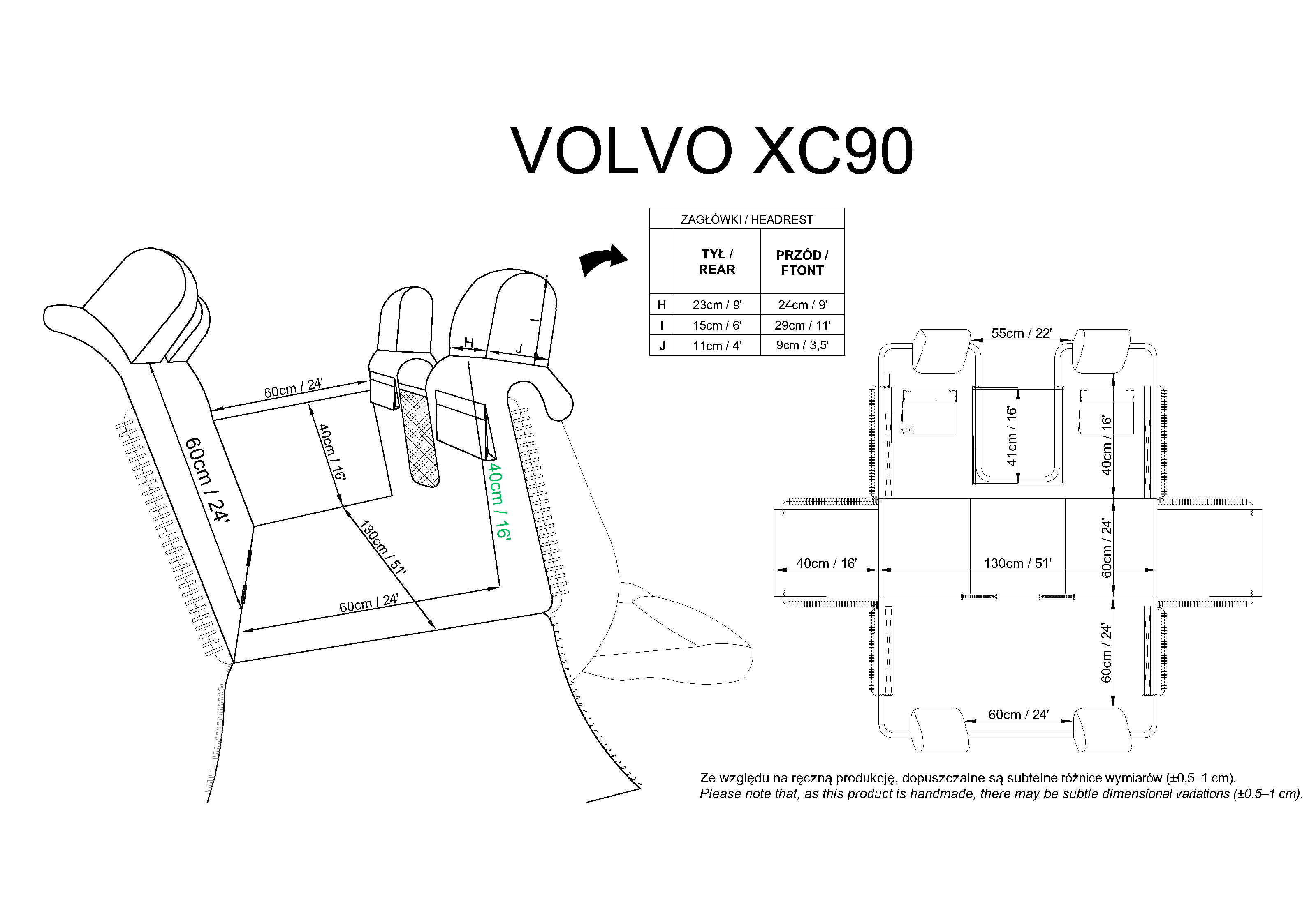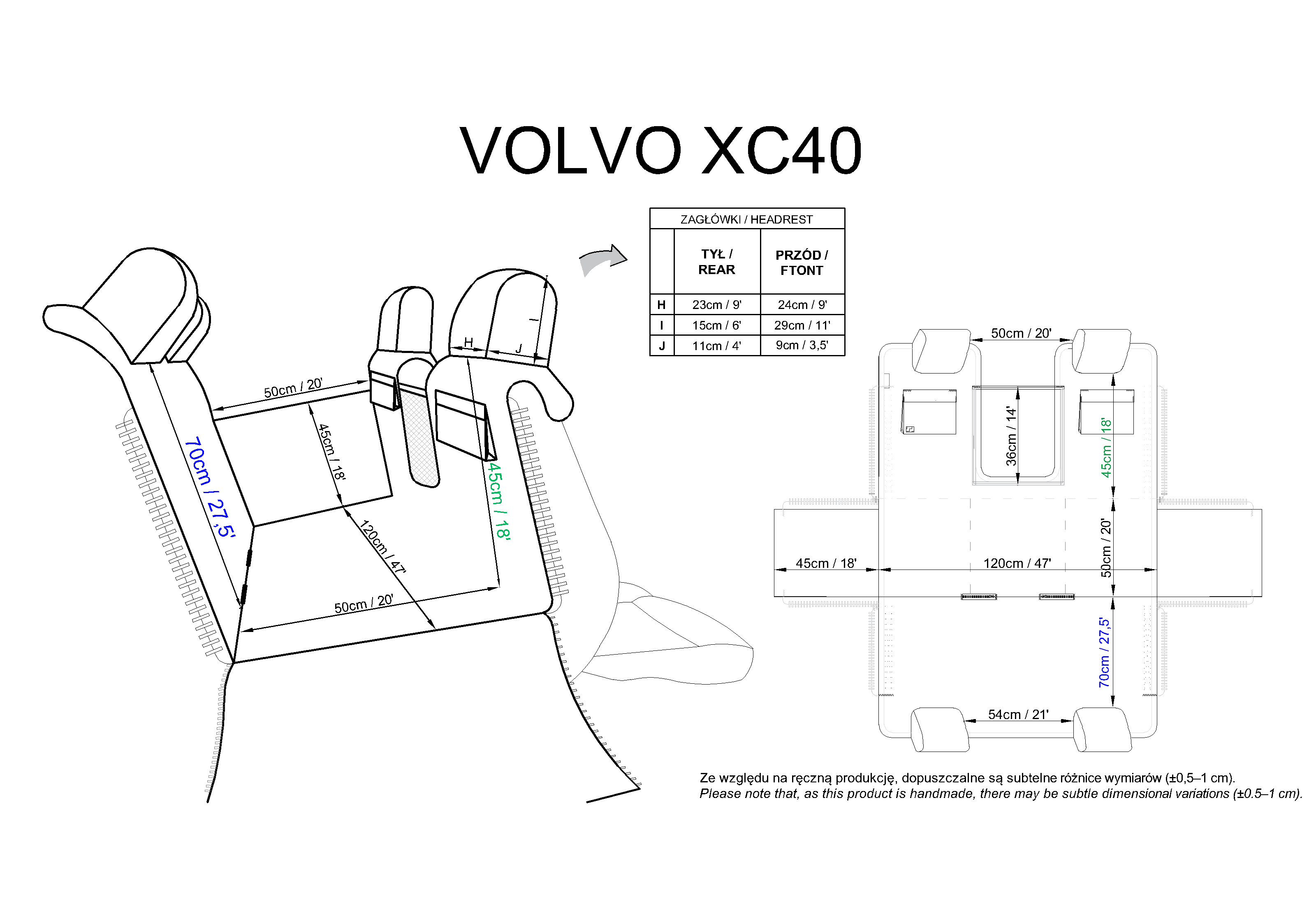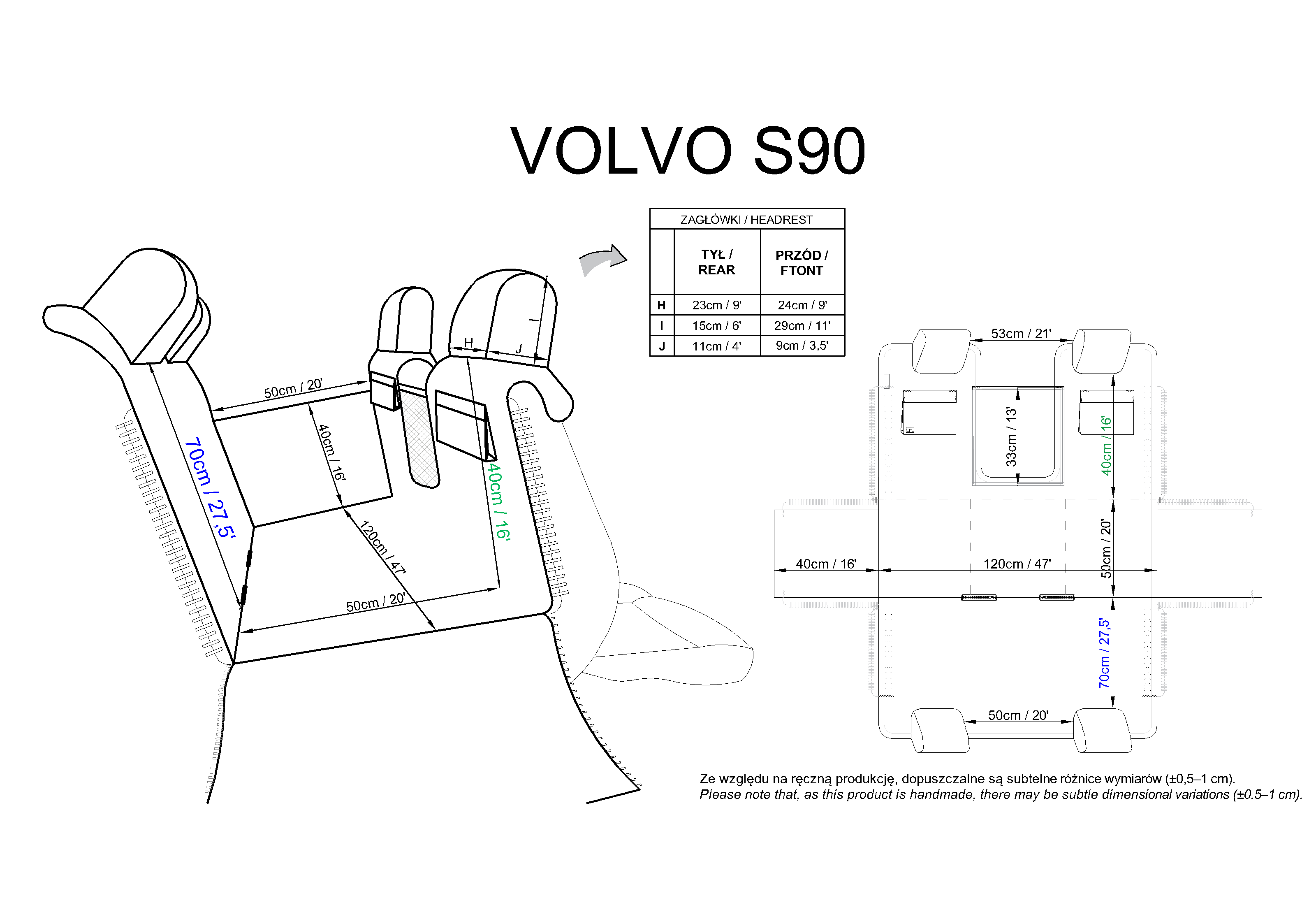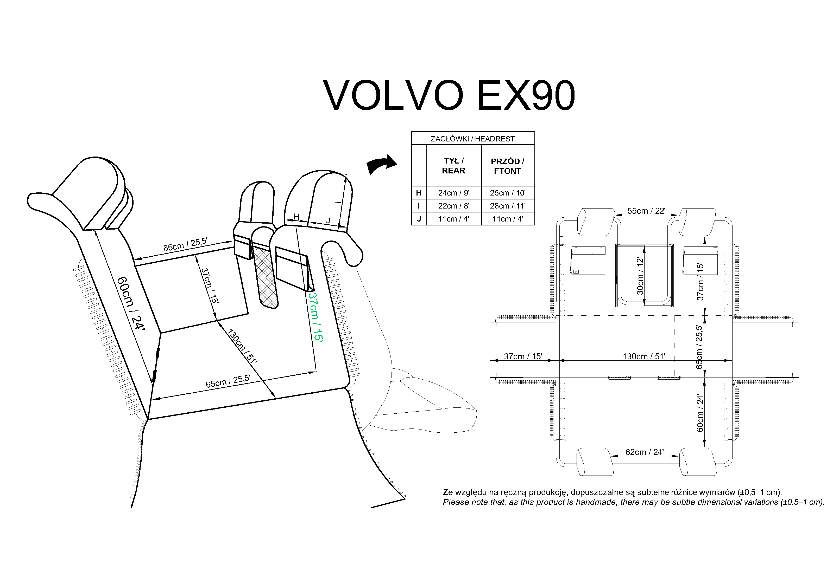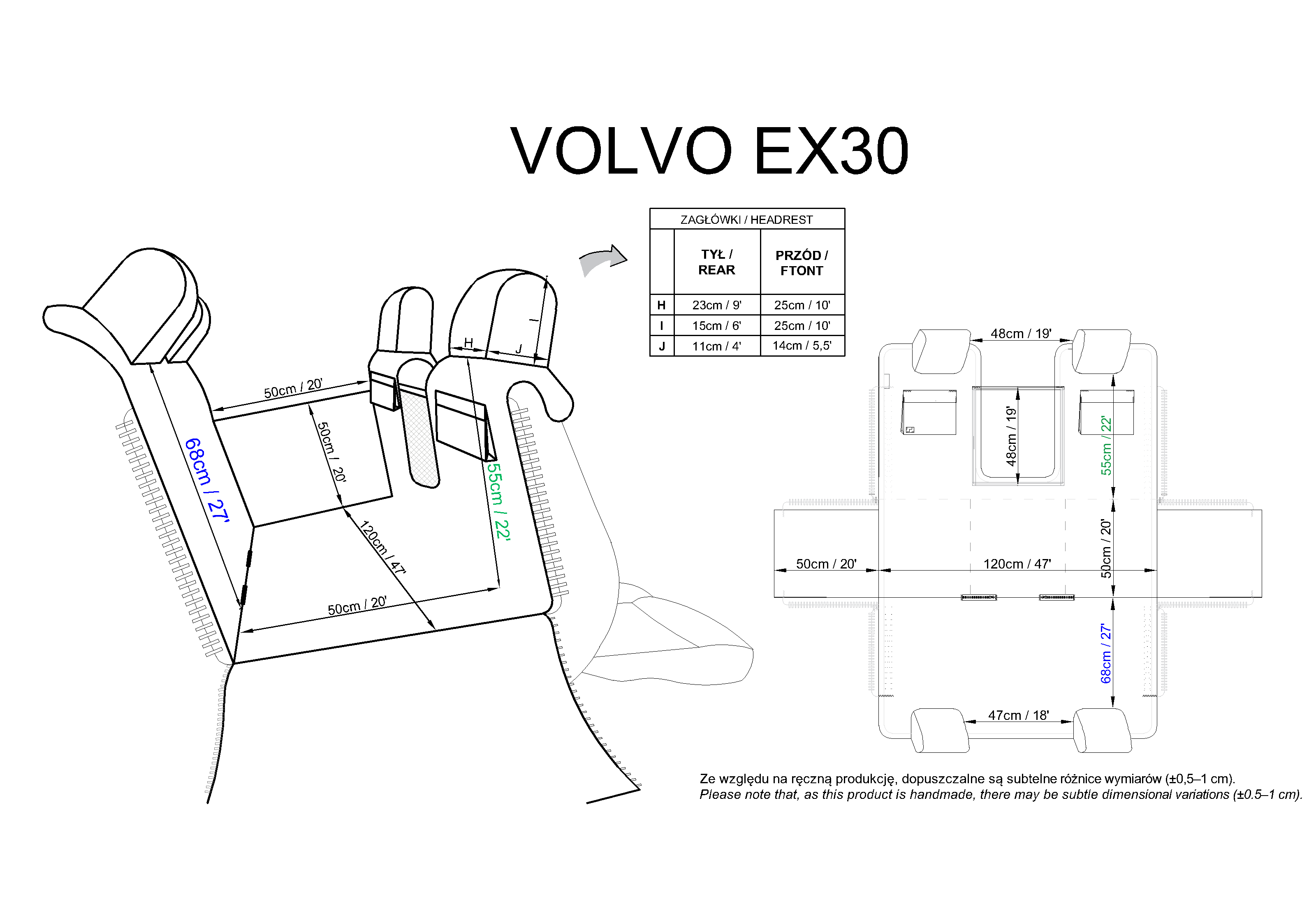 Headrests and pockets: Oxford (100% polyester with PU coating) – durable material with a custom-designed print. The PU layer adds resistance to moisture and damage.