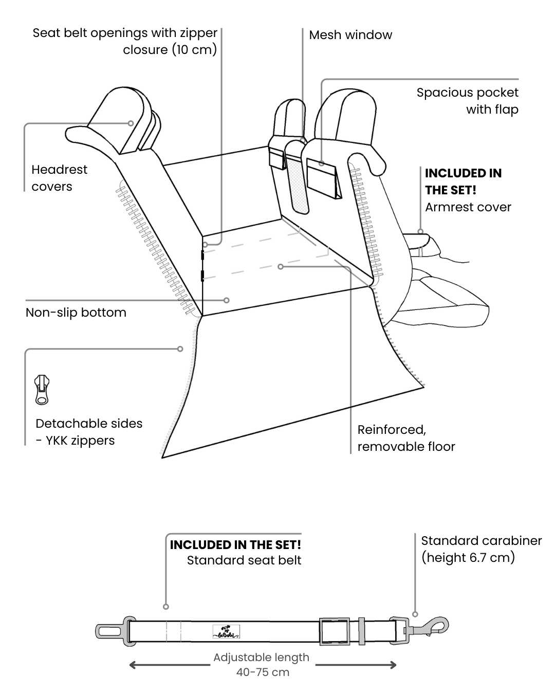 Waterproof, elegantly finished, and highly practical – it provides full protection for your car and maximum comfort for your dog on every journey.