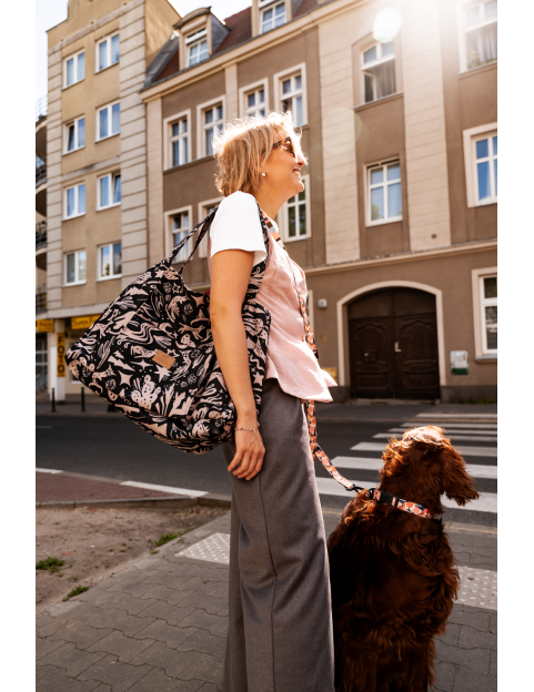 Our shoulder bag will fit all your dog accessories when you're preparing for a trip together!