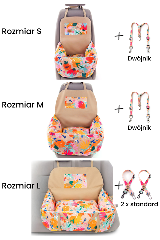 Roz. L - dla psów max. 25 kg lub dwóch średnich psów. W foteliku są dwa otwory na przeprowadzenie pasa.