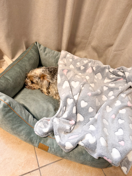 Totalny hit na jesienne wieczory dla Twojego psa - szary z uroczymi serduszkami!