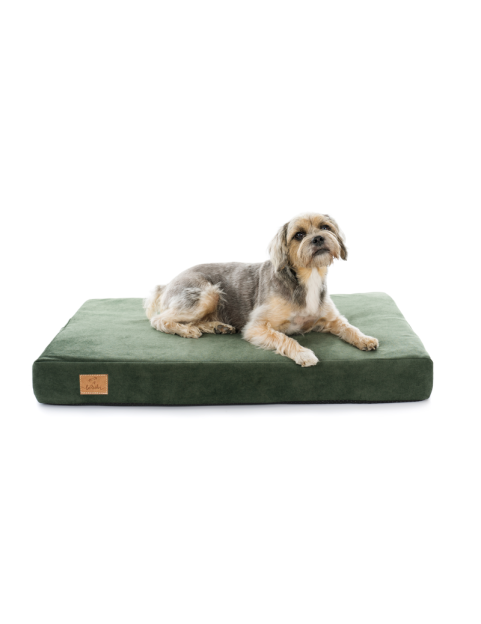 Materac ortopedyczny dla psa Welur Recykling Ciemny Beż + PODUSZKA KOSTKA