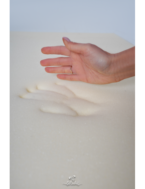 Nasze legowisko wykonane jest z połączenia dwóch wysokiej jakości materacy: ortopedyczna pianka visco, która dopasowuje się do kształtu ciała i pianka o wysokiej gęstości jako podparcie i izolacja od ziemi. Pianki są ze sobą połączone. Pianka visco dostosowuje się do kształtu ciała psa (pianka memory), zapewniając mu optymalne podparcie podczas snu.