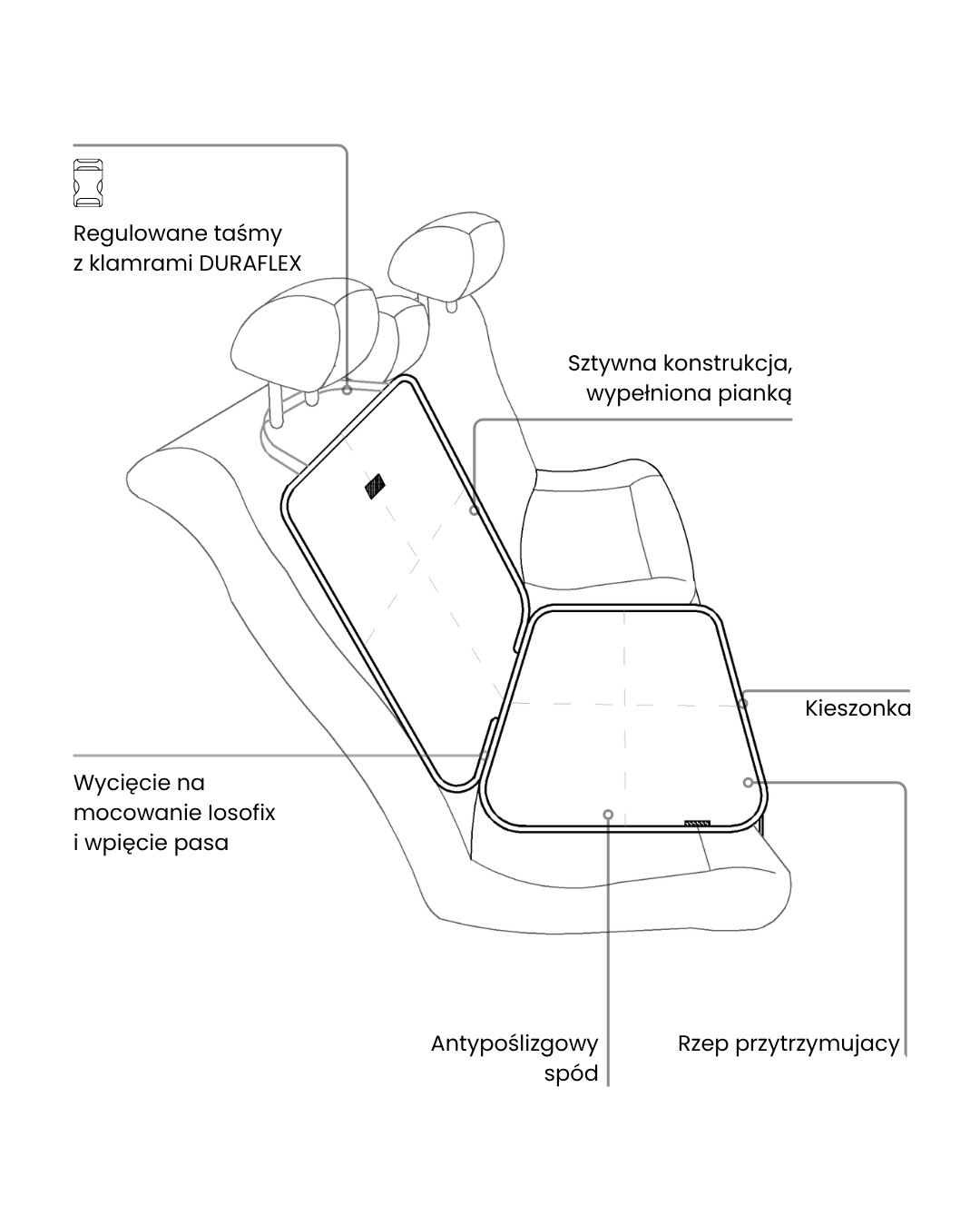 Model maty ochraniającej część tylnej kanapy pod fotelikiem dziecięcym z systemem IsoFix.