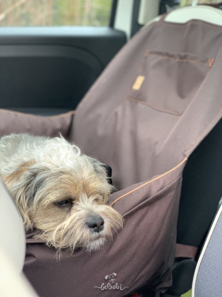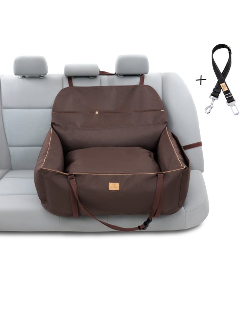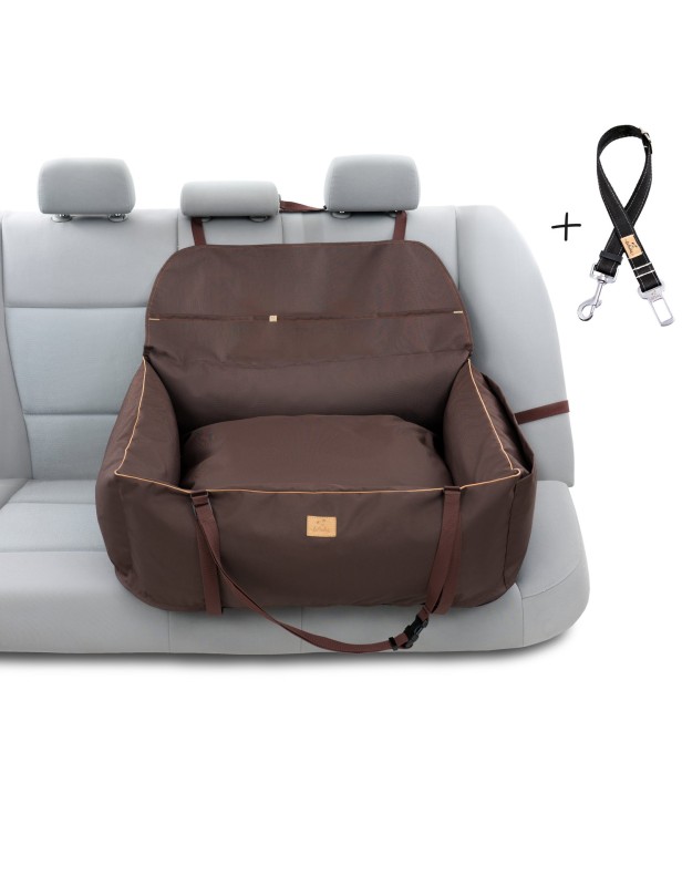 "Ero Soft" fotelik samochodowy dla psa BRĄZ roz. L Z PASEM BEZPIECZEŃSTWA