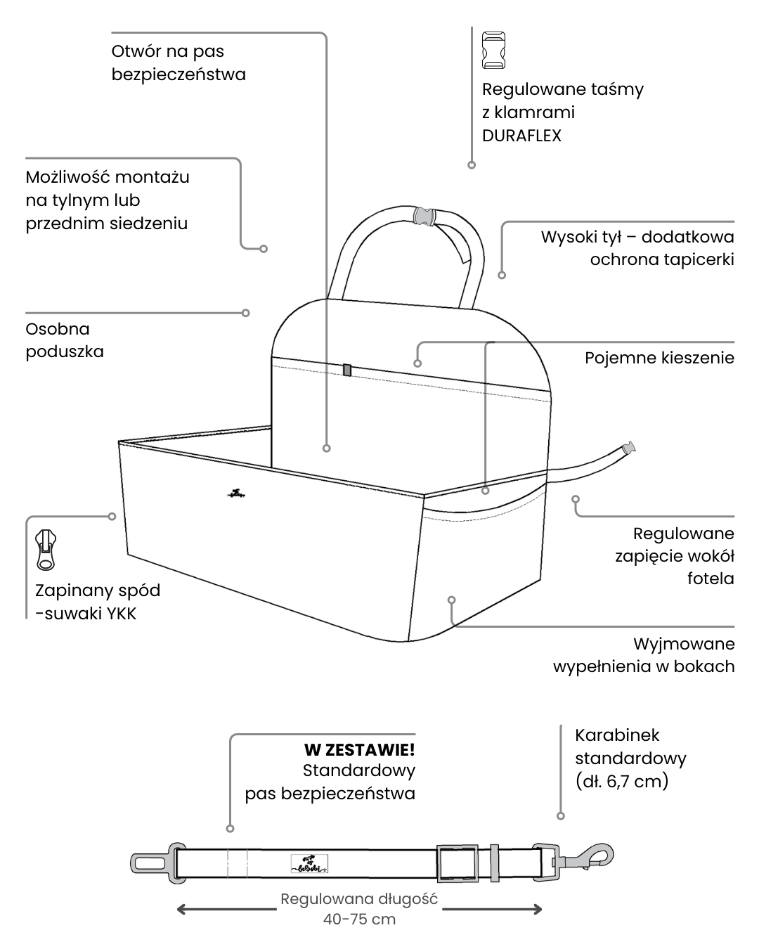 W ZESTAWIE pas bezpieczeństwa standard.