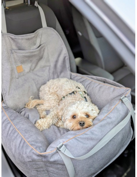 "Ero Soft" fotelik samochodowy dla psa WELUR WODOODPORNY POPIEL roz. L