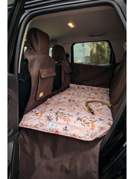 Kuko+ – brązowa, modułowa mata samochodowa dla psa na całą tylną kanapę | małe auta miejskie (S)