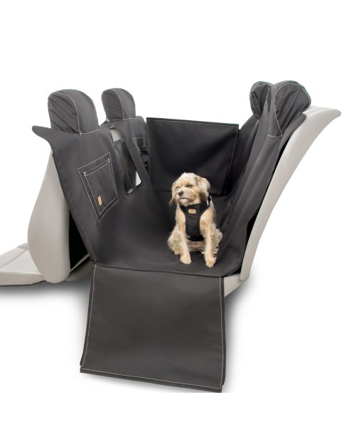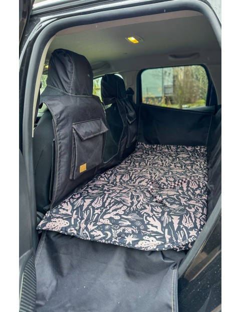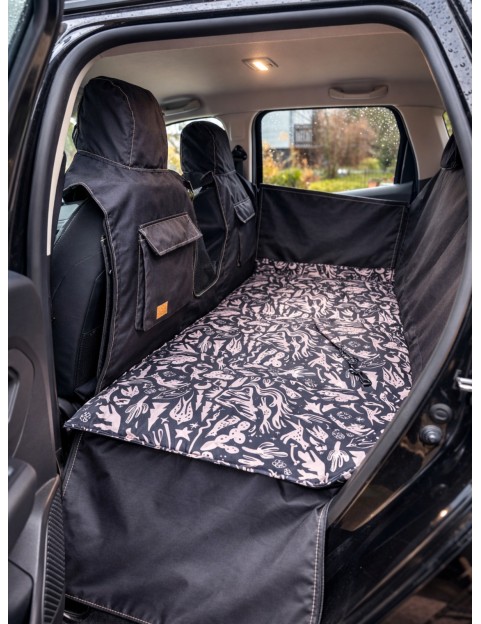 Kuko+ – czarna, modułowa mata samochodowa dla psa na całą tylną kanapę | małe auta miejskie (S)