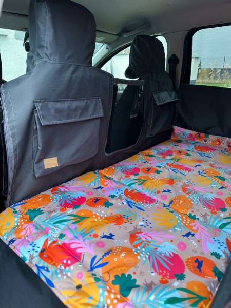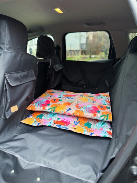 Kuko+ – szara, modułowa mata samochodowa dla psa na całą tylną kanapę | małe auta miejskie (S)