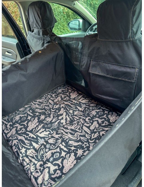Kuko+ – czarna, modułowa mata samochodowa dla psa na całą tylną kanapę | średnie auta kompaktowe (M)
