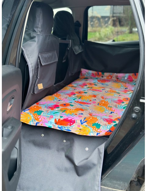 Kuko+ – szara, modułowa mata samochodowa dla psa na całą tylną kanapę | średnie auta kompaktowe (M)