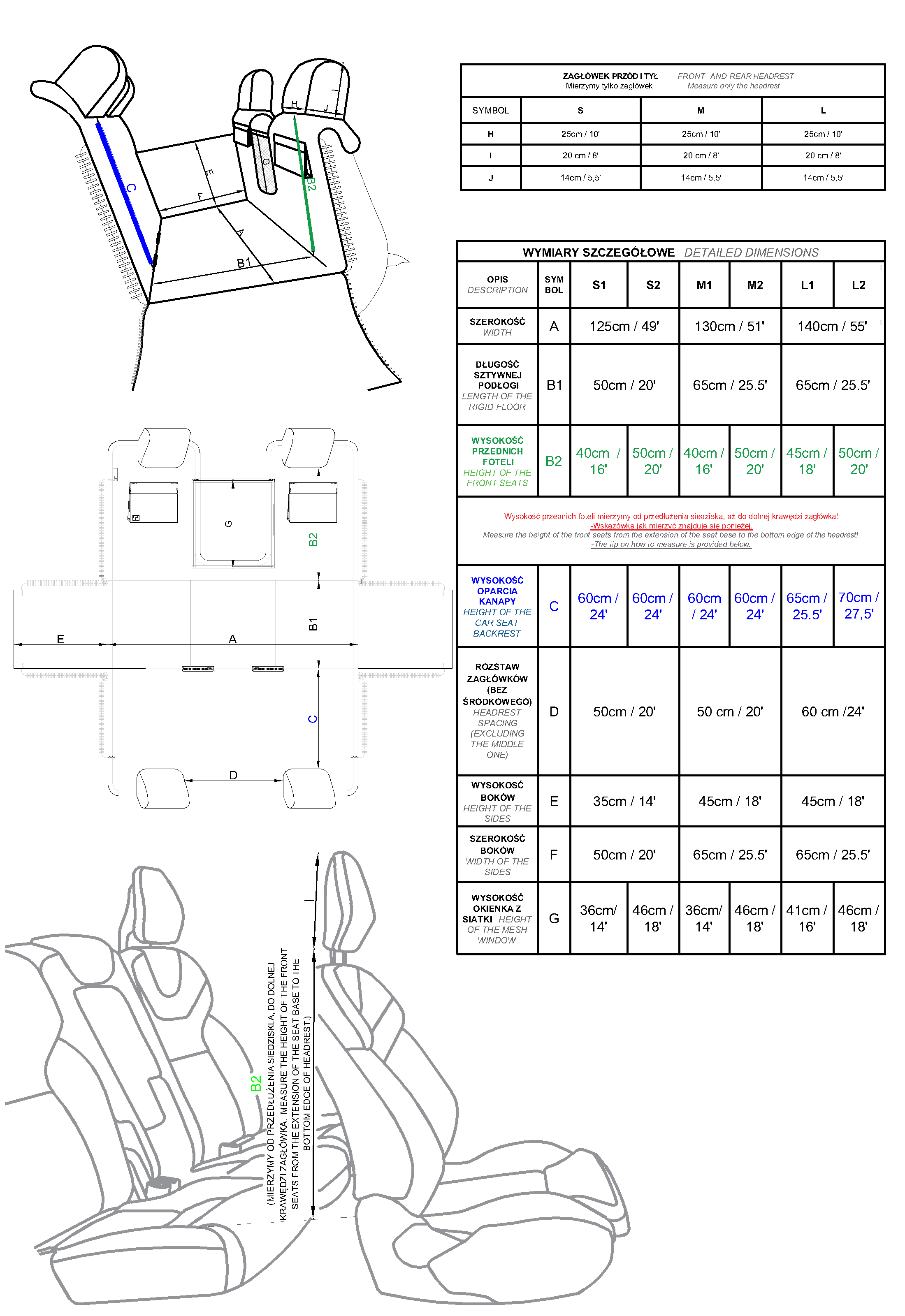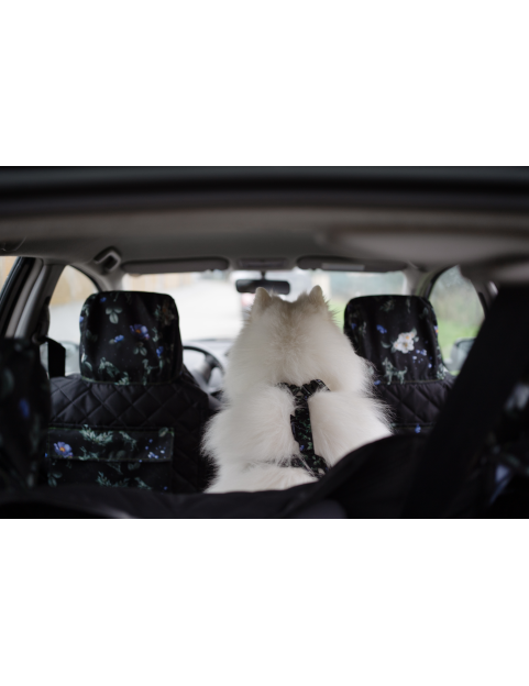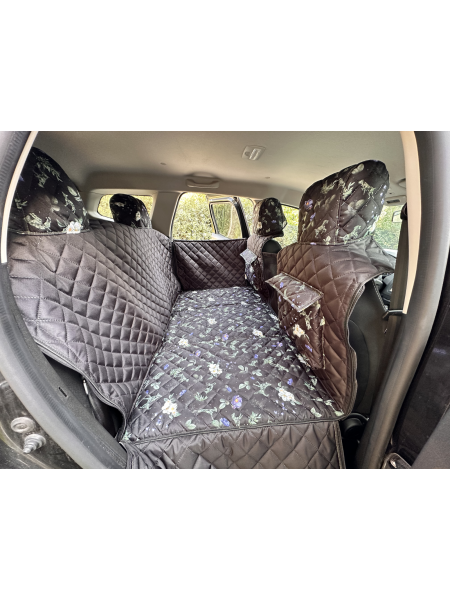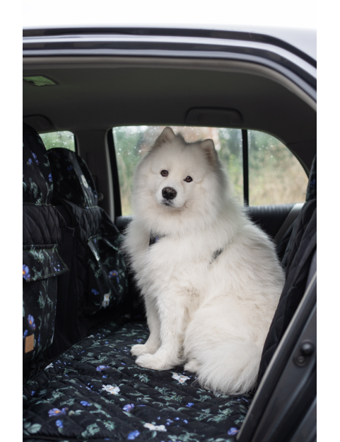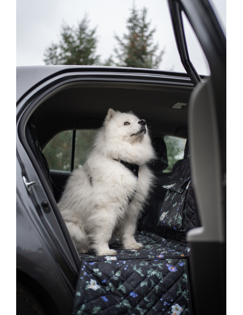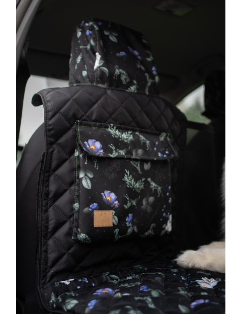 Wykonana z grubej, wodoodpornej tkaniny pikowanej z dodatkową warstwą owaty, zapewnia doskonałą izolację, trwałość i elegancki wygląd. W wersji PAWradise nadruk pojawia się na zagłówkach, kieszonkach i spodzie maty, natomiast wariant czarny mono to klasyczna czerń z beżową nitką – idealna do każdego auta.